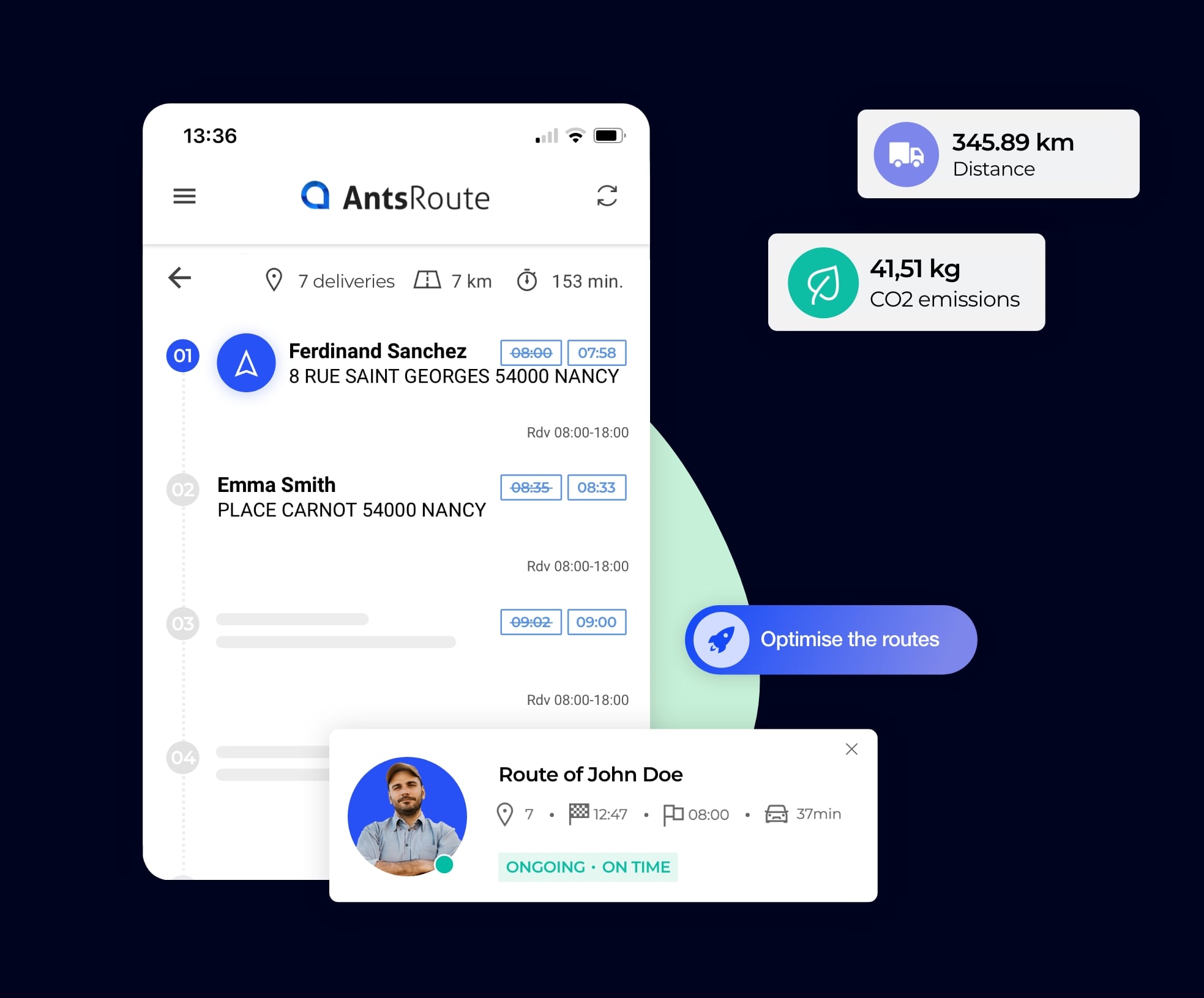 AntsRoute offers a “scored” work order planning system that enables our users to limit the CO2 emissions of each delivery or service to be carried out before even starting to optimise their routes.