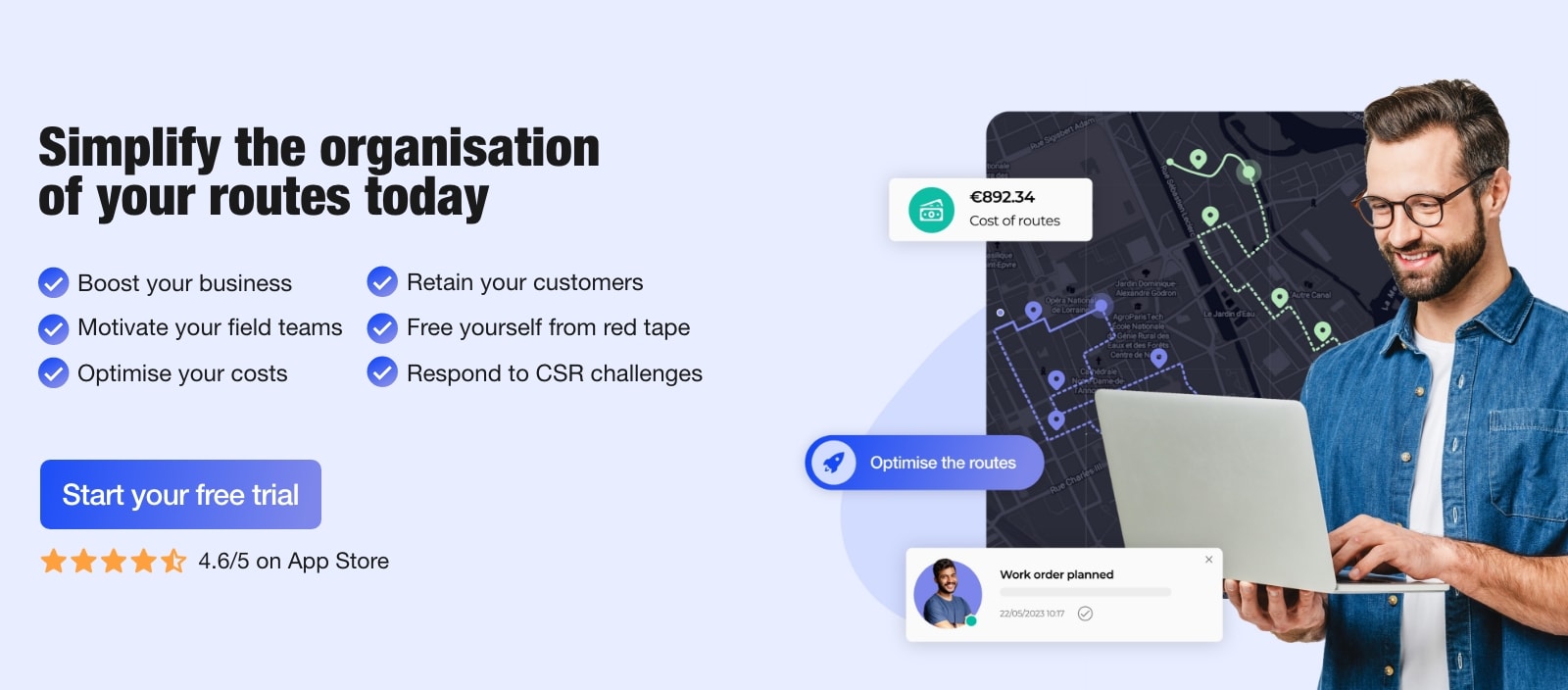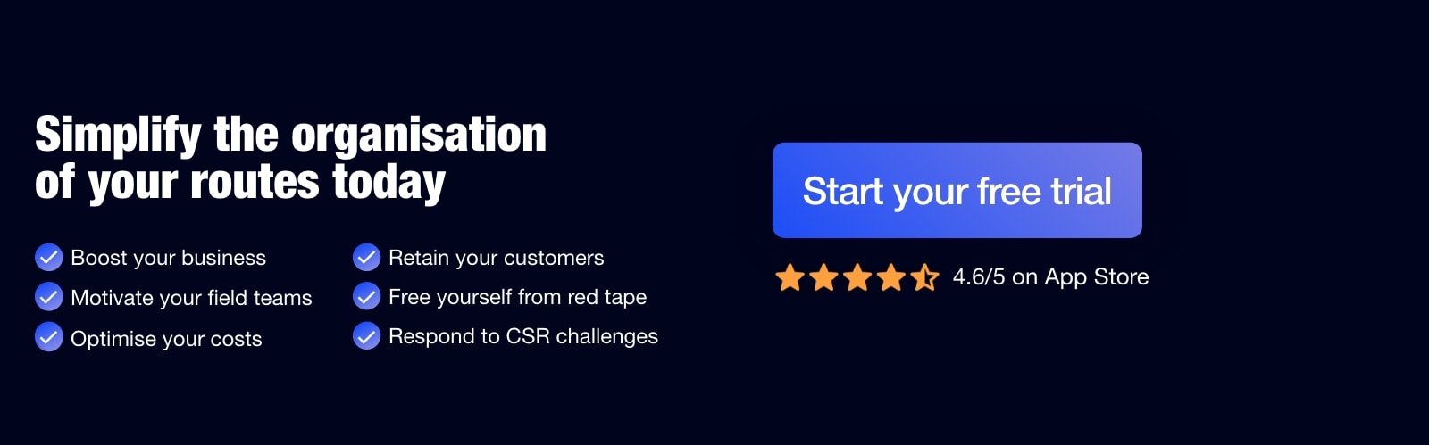 … while trying to minimise the number of miles travelled! If a route is organised in this way, for example using a spreadsheet and navigation software, it is possible to find acceptable solutions in terms of time and constraints. Although the solution found may be sufficient in a given business, the optimisation of resources is often limited, and the organisation of the routes themselves can be very time-consuming.