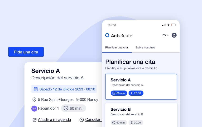El sitio web de reservas AntsRoute, que permite a los clientes finales programar un servicio o una entrega las 24 ...
