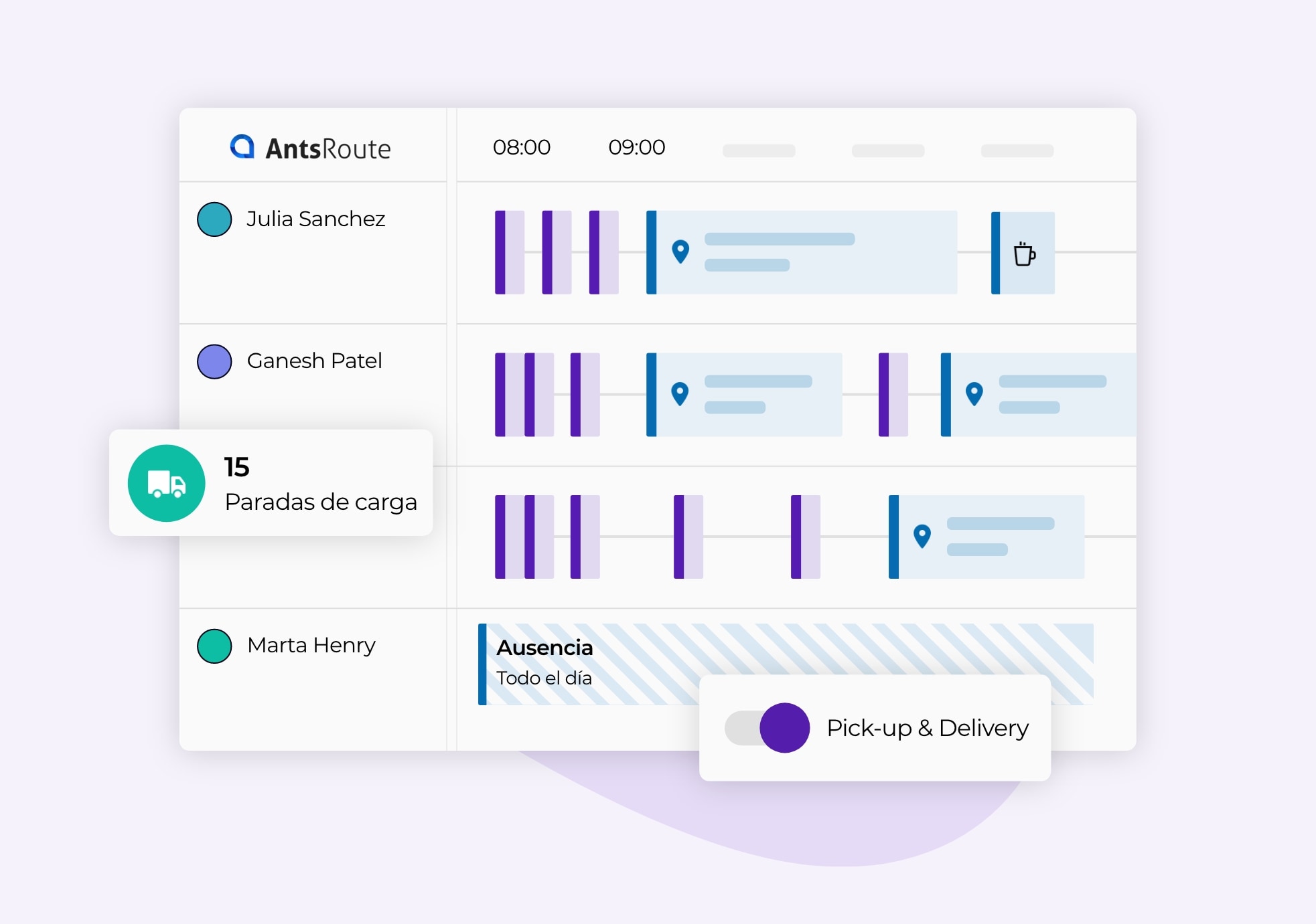 Disfruta de varios modos de planificación inteligentes que toman en cuenta las paradas ya programadas, la disponibilidad de los clientes y todas las especificidades de tu sector de actividad.