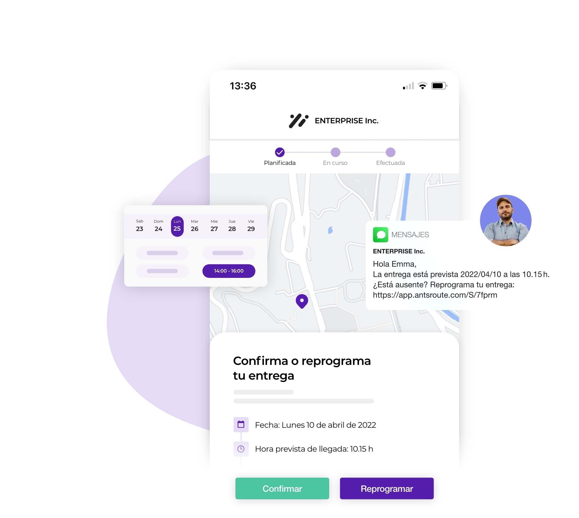 Independientemente de su método de programación de citas, AntsRoute orienta a sus clientes a los mejores horarios. Nuestro software gestiona la planificación de entregas: