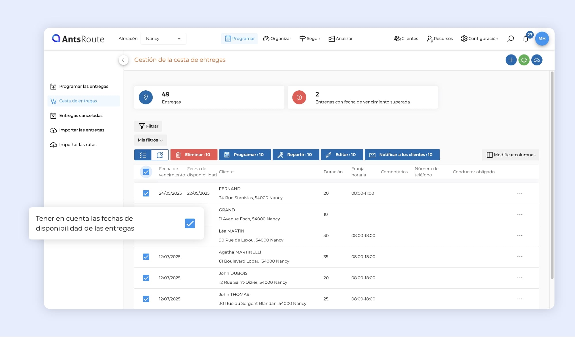Repartir las intervenciones teniendo en cuenta las fechas de disponibilidad en AntsRoute.