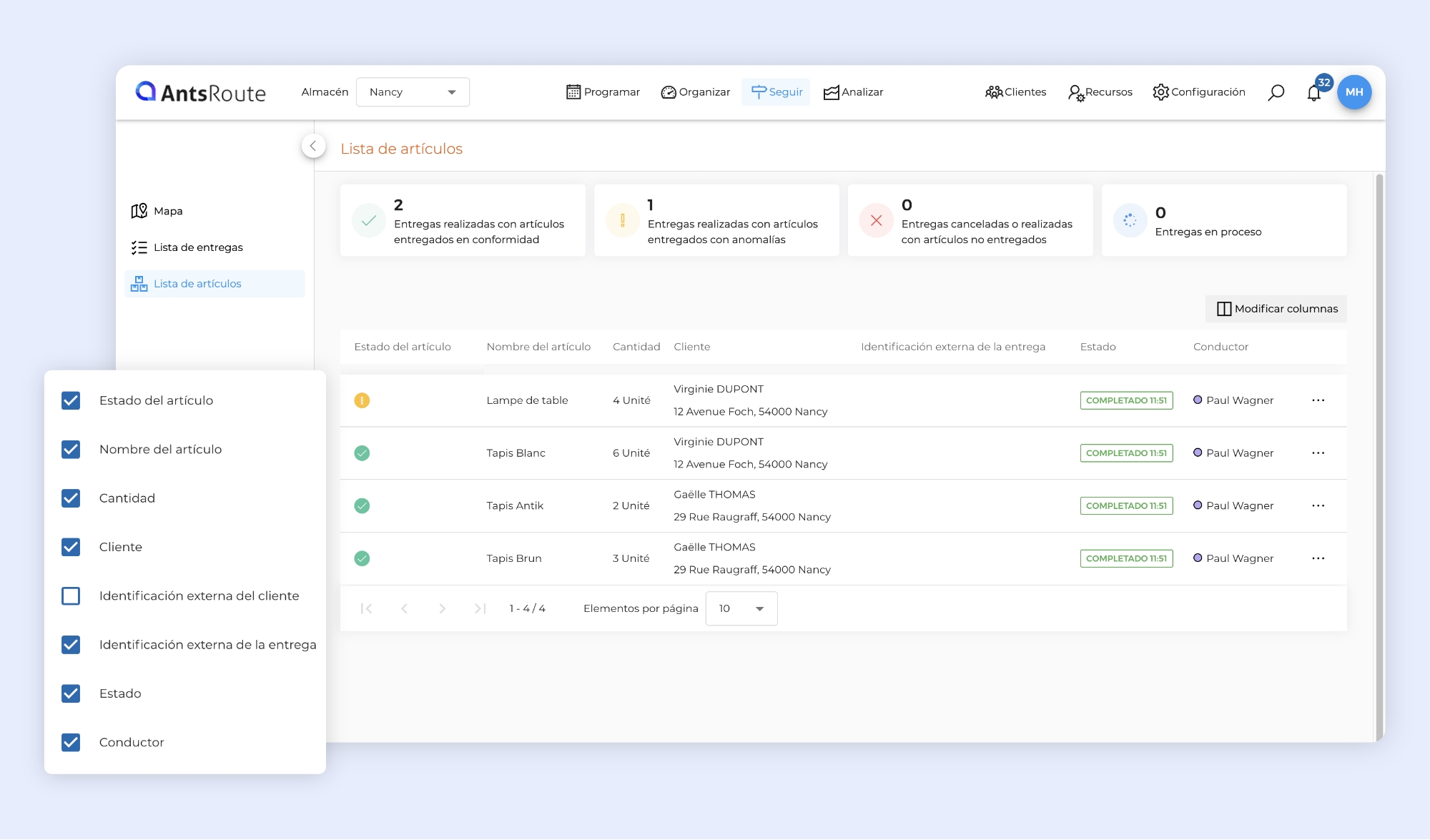 La base de artículos de AntsRoute ya te permite gestionar todos los productos entregados durante tus rutas. Gracias a esta funcionalidad, tus conductores saben exactamente qué cantidades deben entregar a cada cliente, en cada etapa.