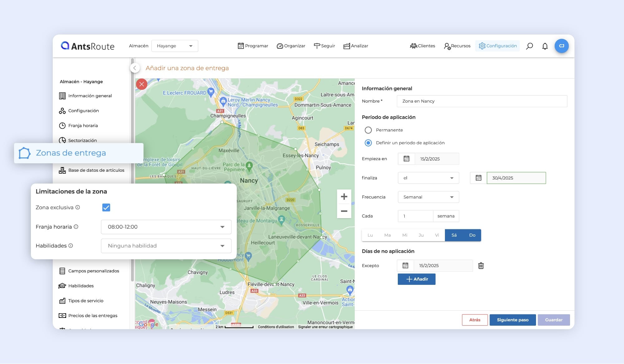 Duplicar una zona geográfica con restricciones en AntsRoute.