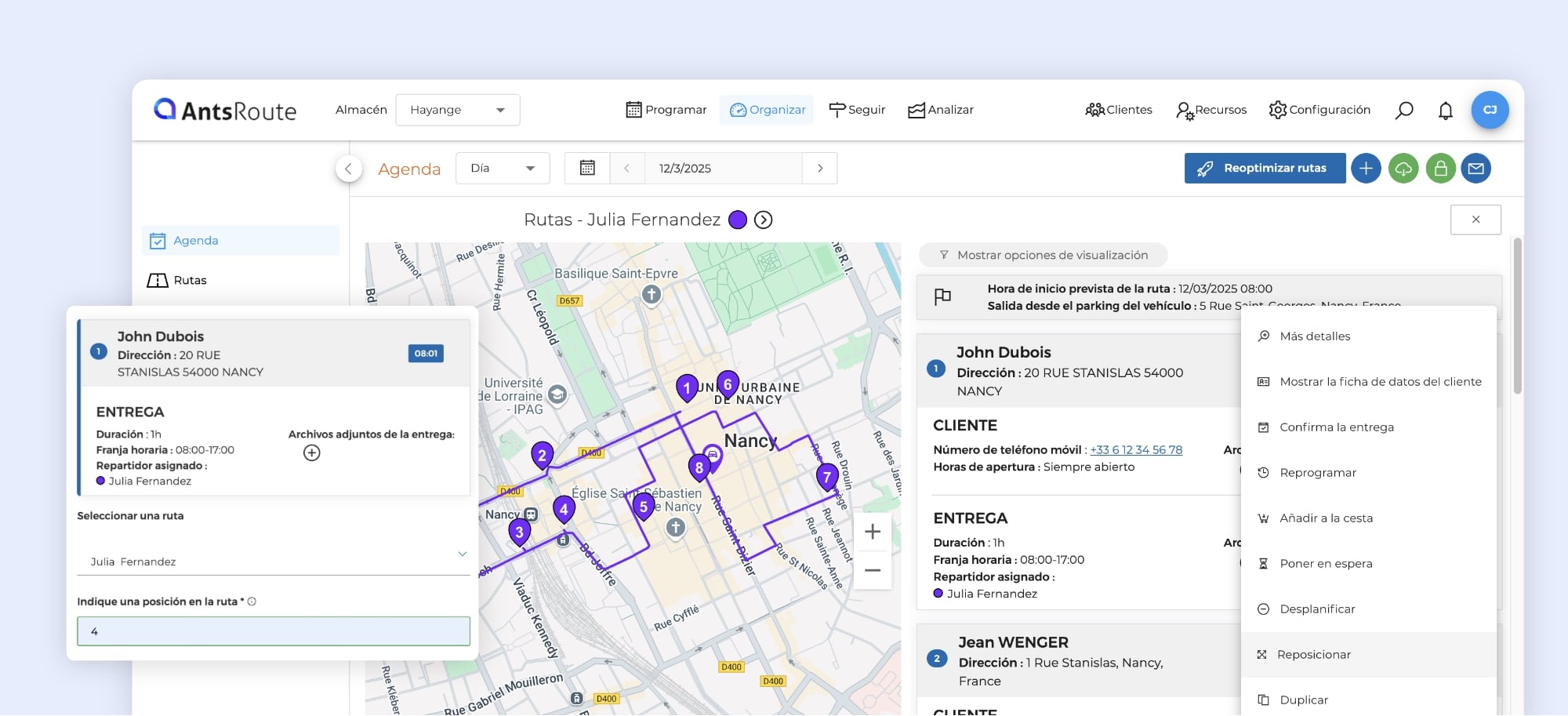 Hasta ahora, AntsRoute le permitía reposicionar las tareas planificadas en una posición fija dentro de la misma ruta. Esta función le ayuda a adaptar el orden de las órdenes de trabajo en función de sus necesidades, con el fin de optimizar su logística.