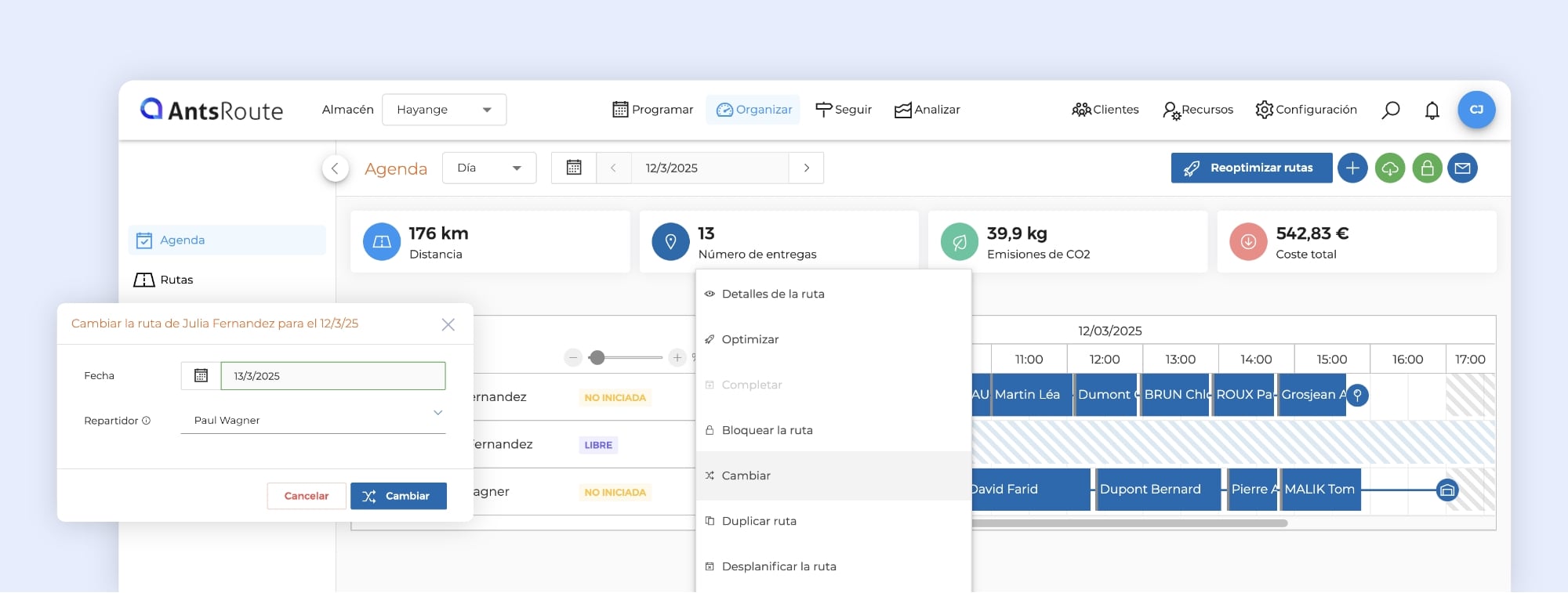 ¡Mayor flexibilidad en la gestión de sus rutas! Nuestra herramienta de optimización de rutas se ha mejorado con una nueva función que le permite cambiar de ruta no sólo entre conductores, sino también en diferentes fechas.