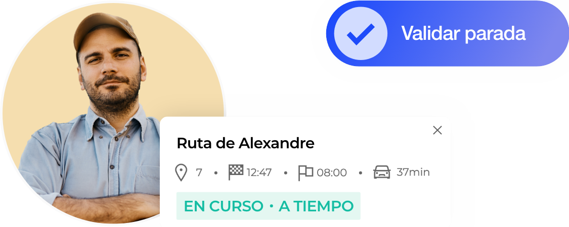 Al inicio de la ruta, automatiza el envío de una notificación que permite a los clientes seguir en directo la llegada del agente. El cliente puede visualizar en un mapa dónde se encuentra el conductor y conocer el número de clientes a visitar antes de llegar a su domicilio. Los enlaces de tracking están disponibles con marca blanca: