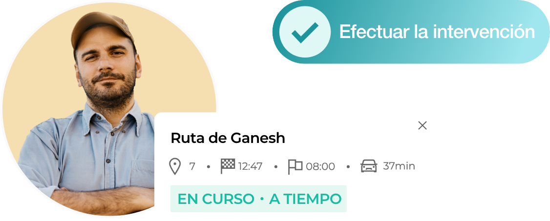 - Posibilidad de modificar manualmente el orden de las paradas asignadas a un técnico o asignar una intervención a otro agente.