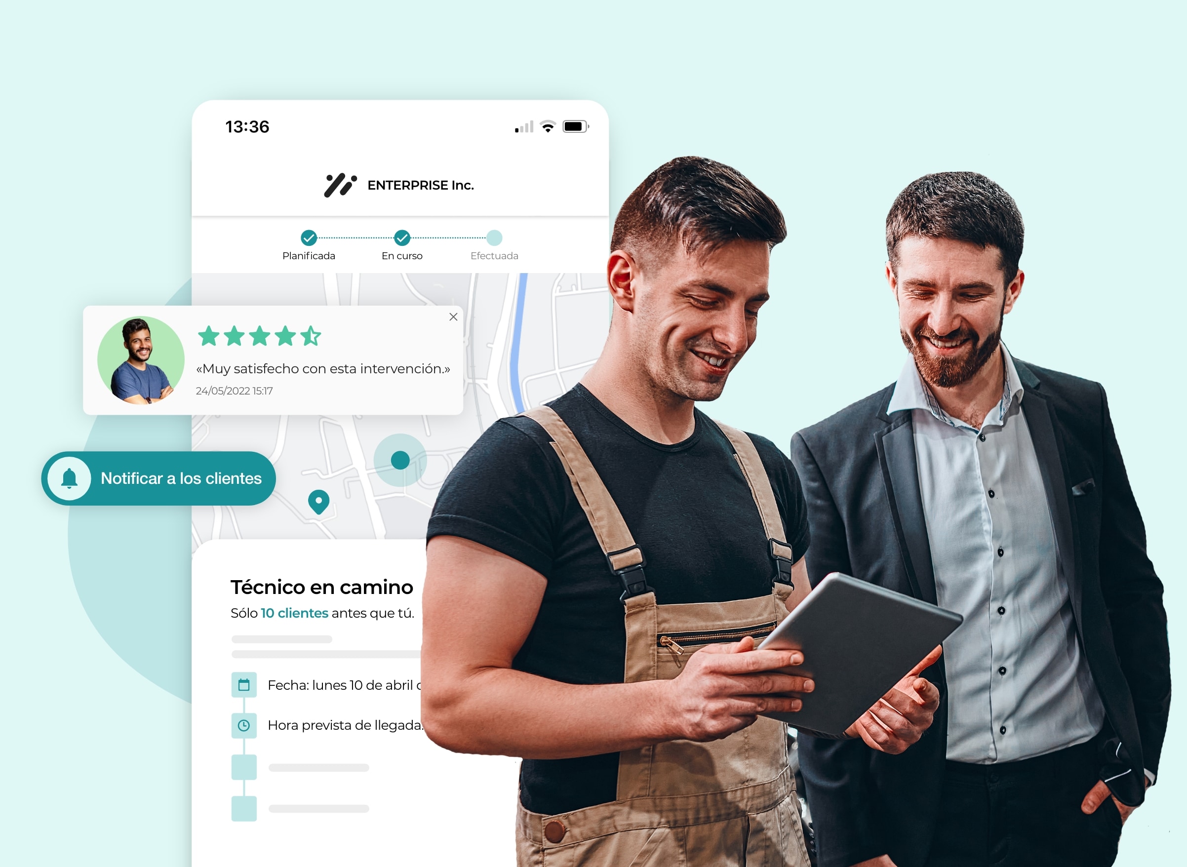Fideliza a tu clientela con una comunicación en tiempo real en cada etapa del proceso de intervención.