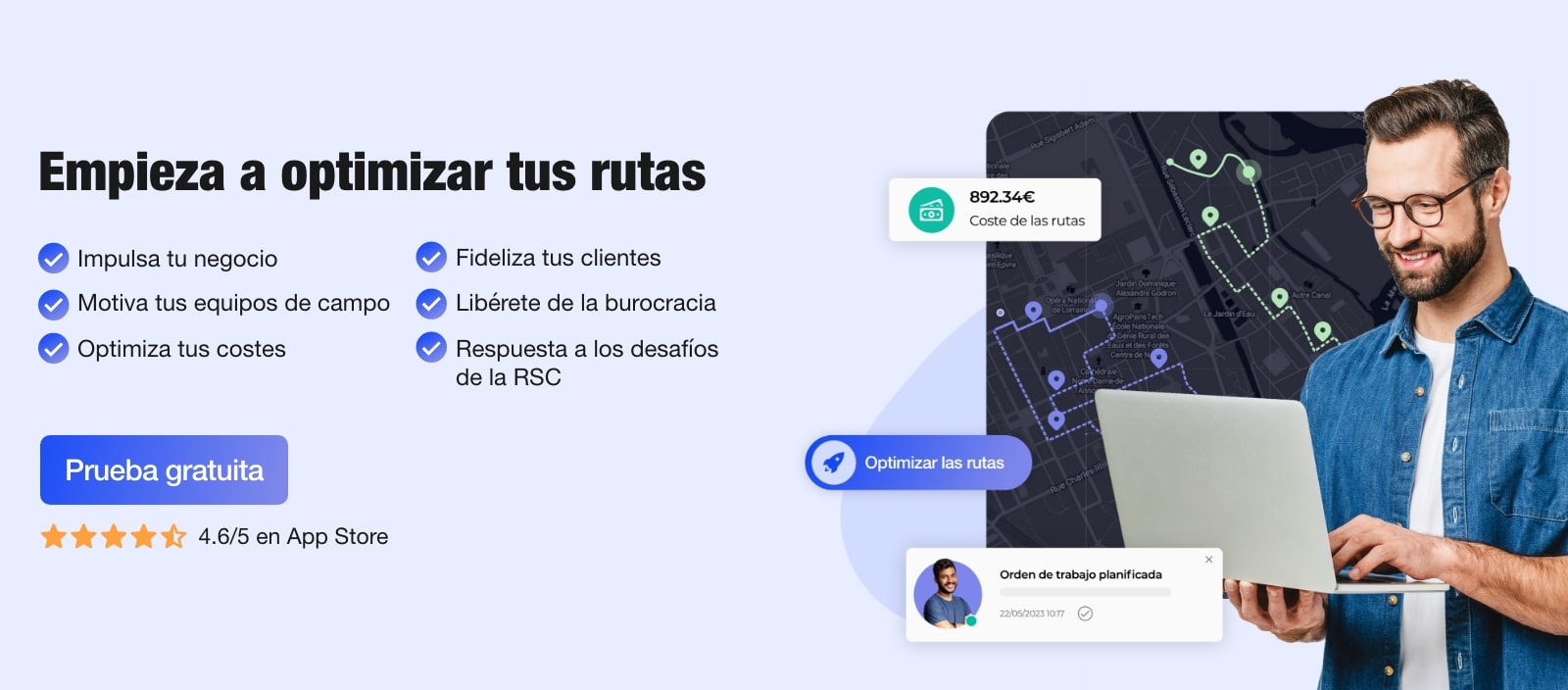 Un programa de optimización de rutas es una herramienta que organiza, planifica y optimiza tus rutas de entrega, de intervención, de visita a domicilio.