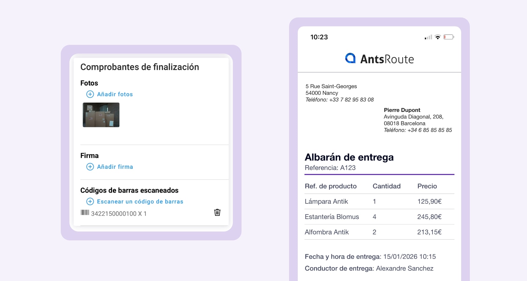 • Digitalizado e integrado en las herramientas de negocio, el albarán de entrega se convierte en una fuente de datos explotable para garantizar la fiabilidad de las operaciones y mejorar el rendimiento global con AntsRoute.