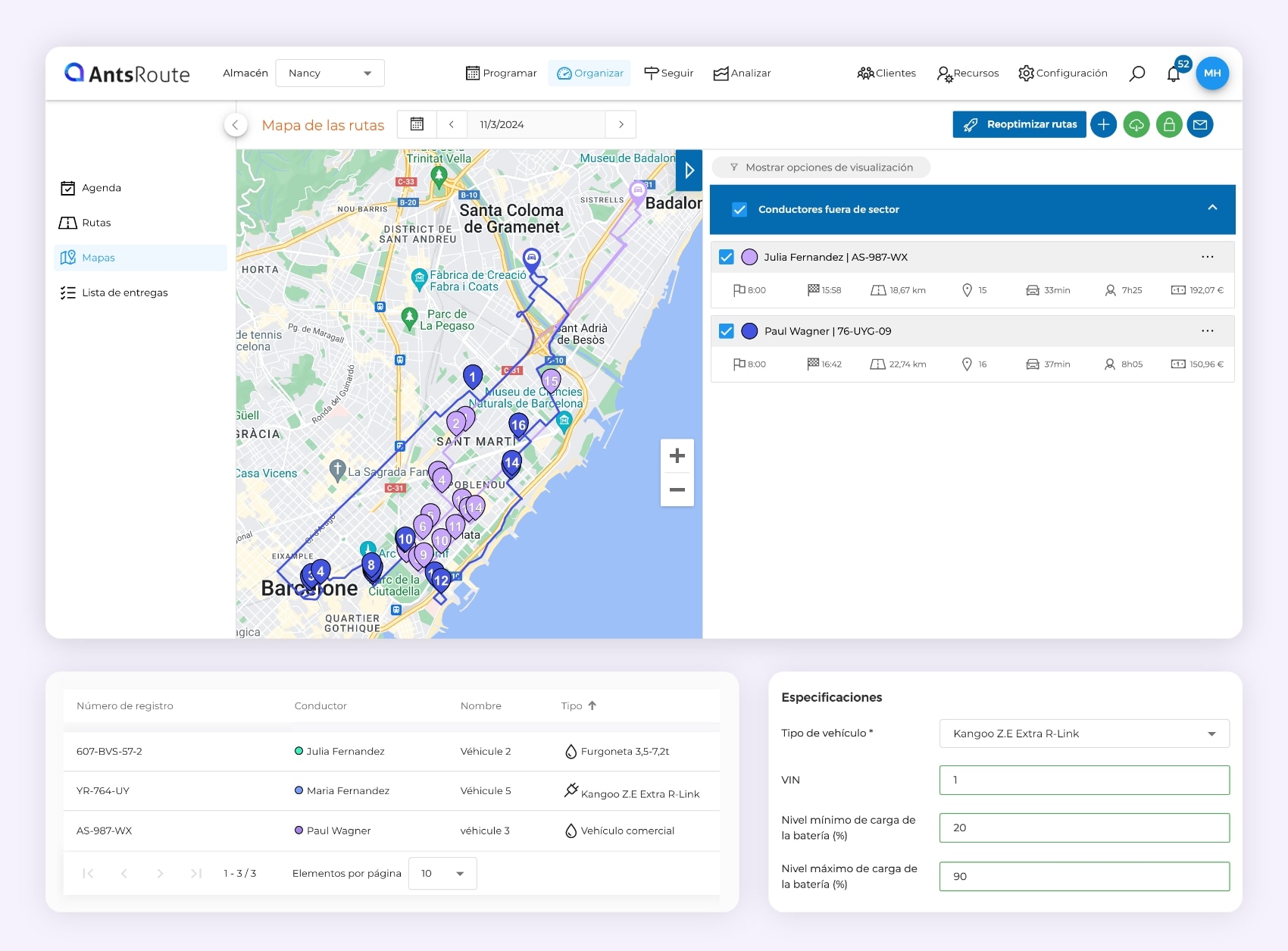 AntsRoute optimiza rutas para varios tipos de vehículos.