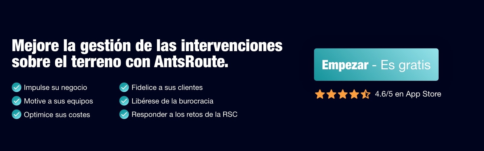 ¿Te gustaría descubrir AntsRoute para planificar tus servicios de campo y optimizar las rutas de tus equipos? Regístrate de forma gratuita para probar el software en condiciones reales, ¡y mejorar rápidamente tus procesos de gestión!