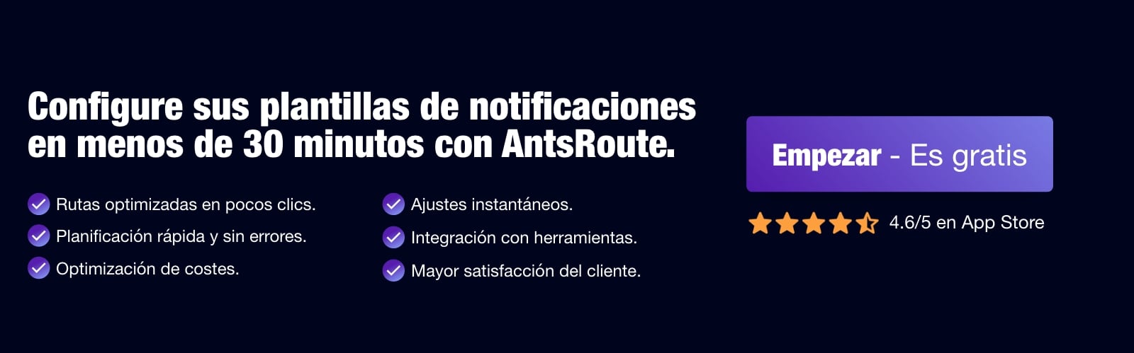 Notificaciones de entrega: configurar y automatizar sus mensajes con AntsRoute (tutorial y plantillas)