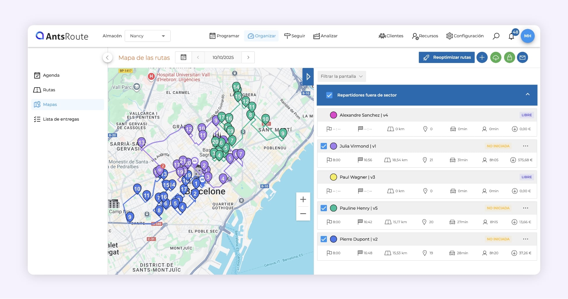 Antes de utilizar AntsRoute, los responsables de operaciones pasaban horas revisando, corrigiendo y reorganizando sus rutas manualmente. Ahora, todo se hace en cuestión de minutos: