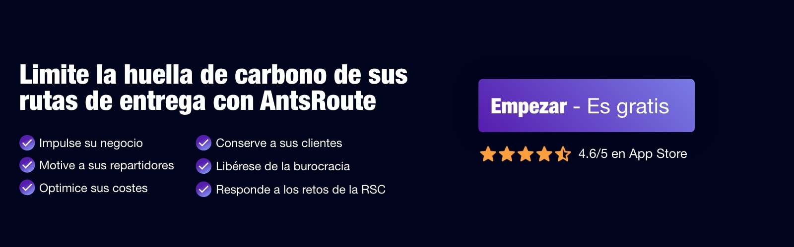 ¿Quieres reducir la huella de carbono de tu empresa conservando la misma calidad de servicio? Te proponemos disfrutar de AntsRoute durante 7 días. ¡Apúntate para beneficiar esta oferta gratuita y sin compromiso!