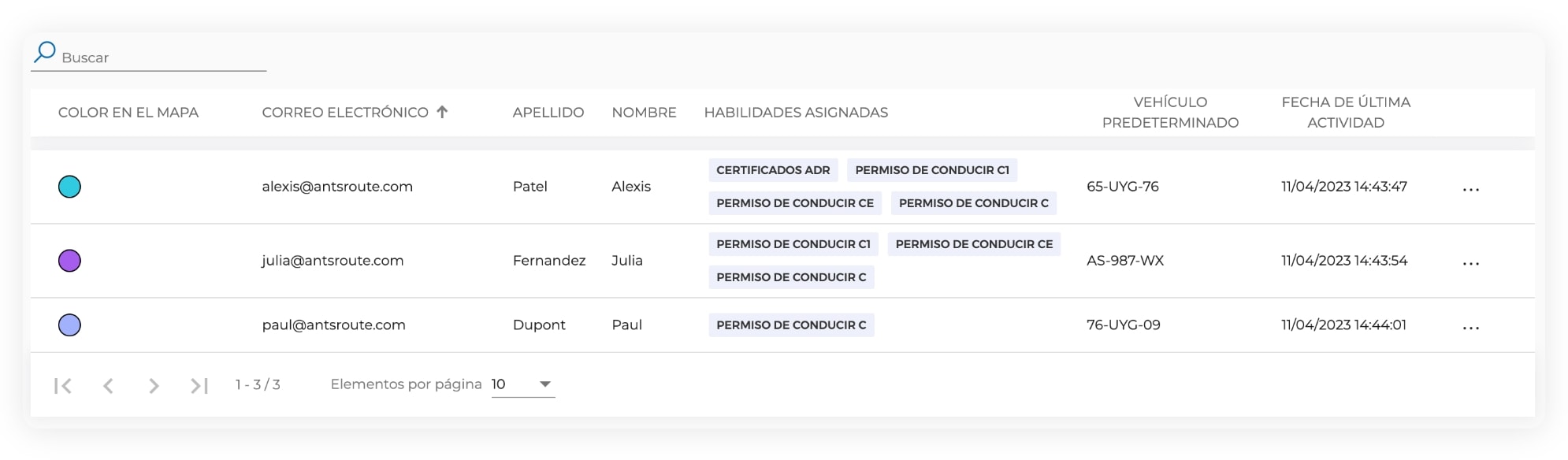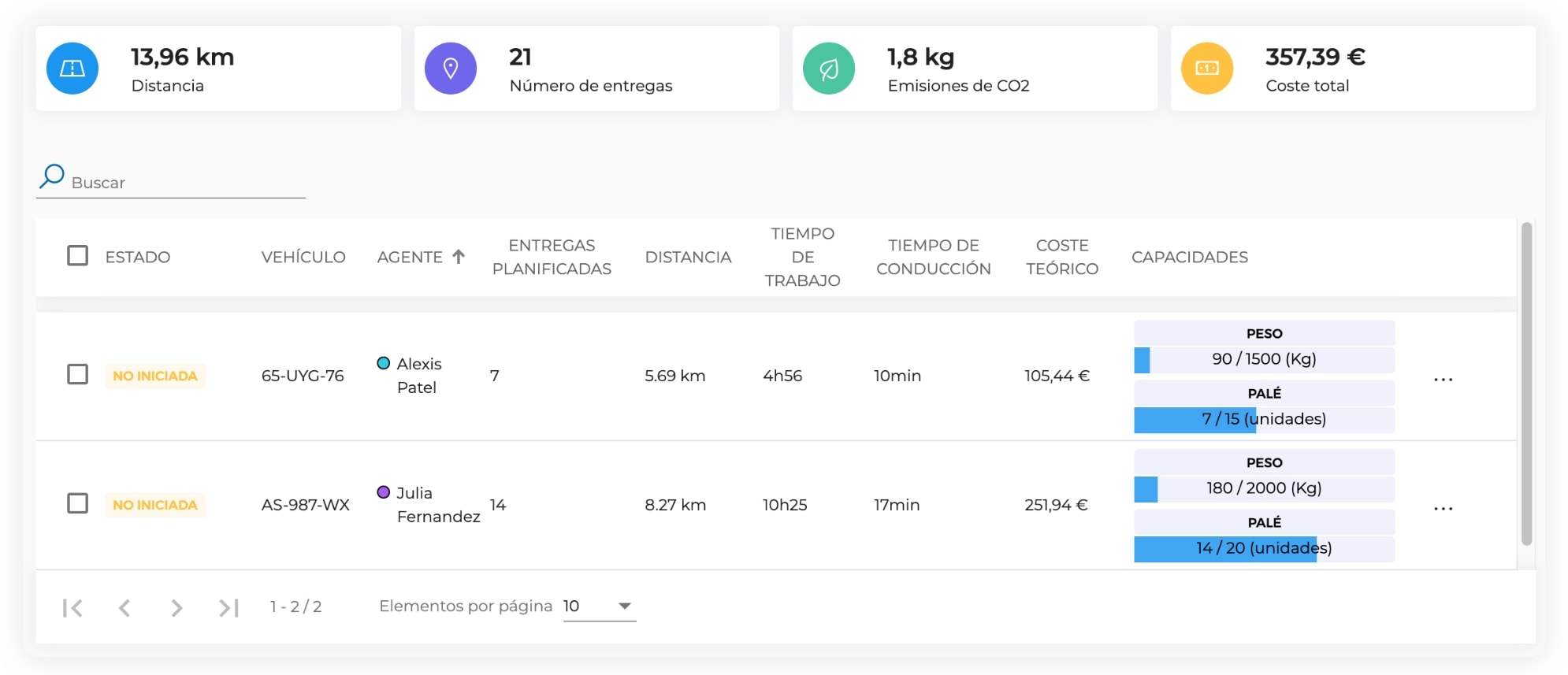 • Las direcciones de inicio y fin, así como las paradas intermedias de la ruta: el centro logístico, el almacén, el punto de recogida de paquetes, etc.