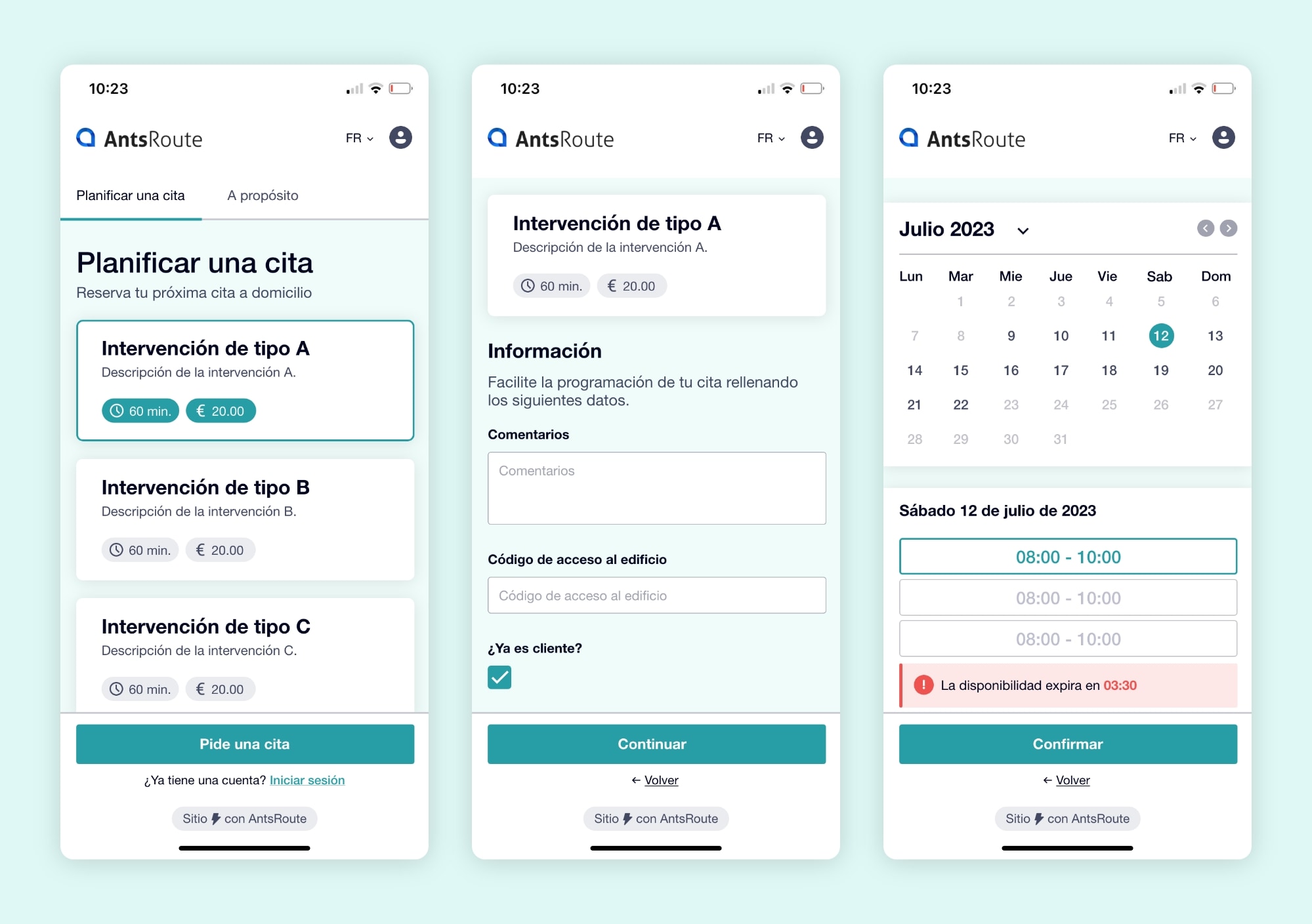 La interfaz AntsRoute, que permite a los clientes programar una cita de servicio.