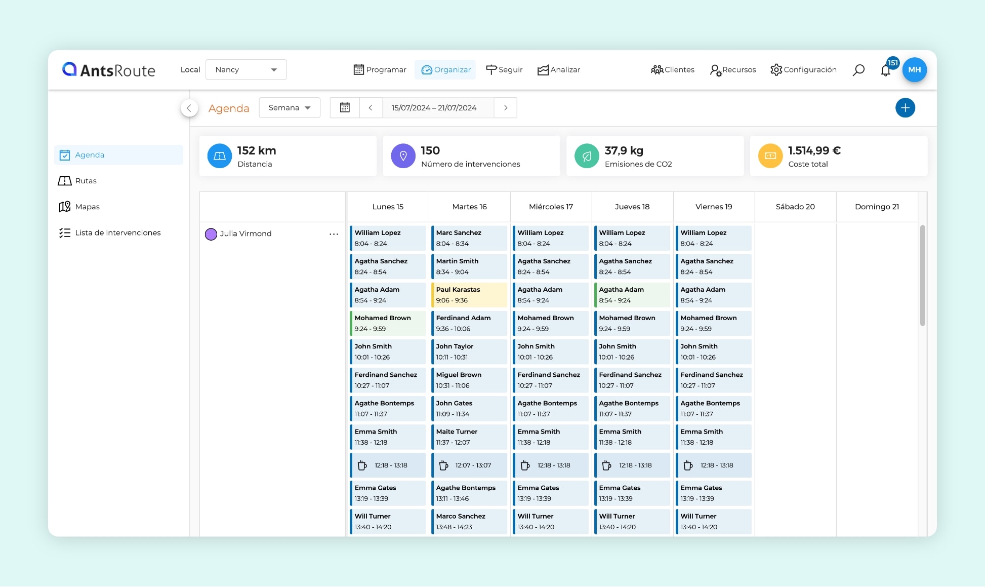 Otra ventaja imprescindible de un buen programa de planificación es la posibilidad de optimizar el planning de tus conductores o de tus agentes de intervención en función de diferentes criterios: