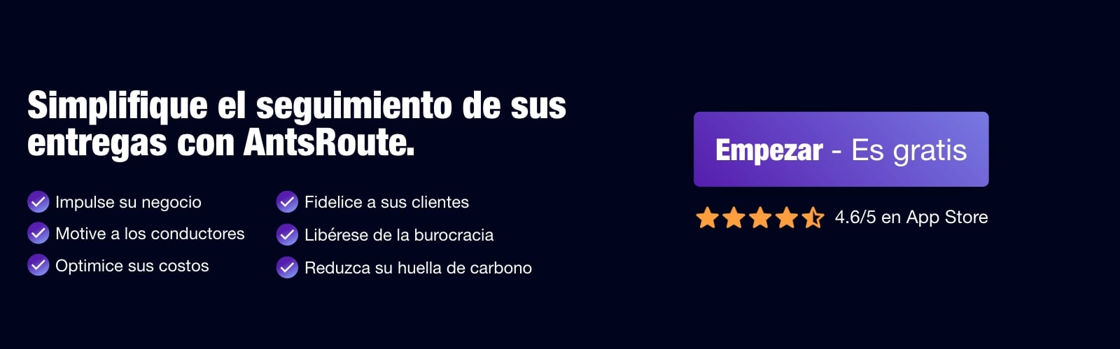 ¿Quiere mejorar la organización de sus entregas, reducir los retrasos y automatizar la planificación sin complicar el día a día de su equipo? Pruebe ahora AntsRoute con una prueba gratuita de 7 días, sin compromiso, y descubra cómo puede adaptarse a su empresa y simplificar la planificación de la última milla.