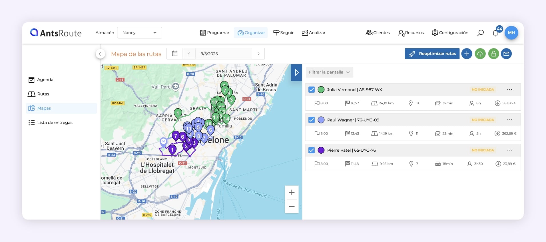 - Generar rutas en pocos clics según sus limitaciones y prioridades.