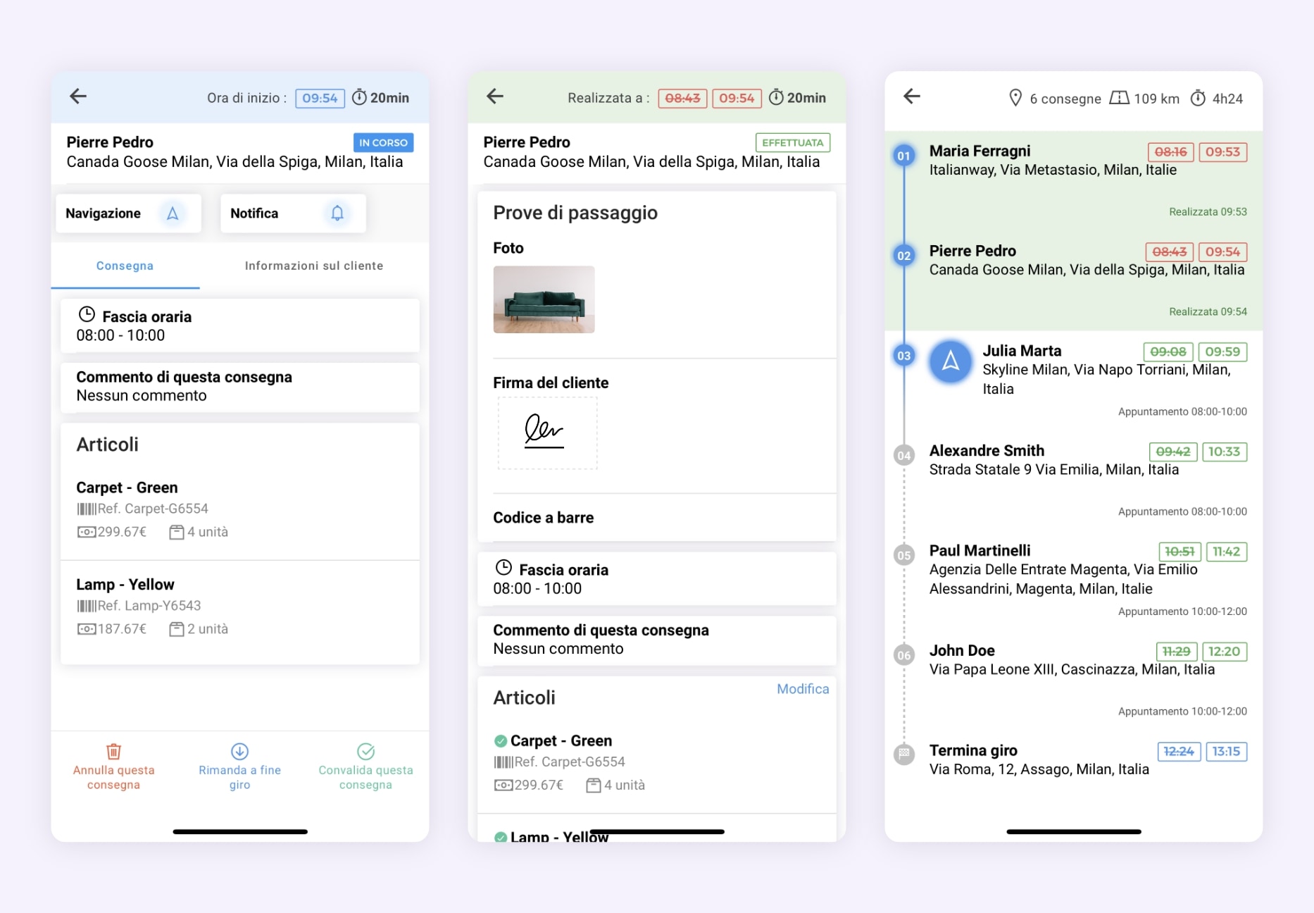 Grazie all’applicazione mobile AntsRoute, gli autisti possono anche far risalire direttamente la firma elettronica del cliente, nonché una foto, per attestare il corretto svolgimento della consegna. Il nostro servizio assistenza è naturalmente a tua disposizione per accompagnarti durante l’impostazione di questi campi personalizzati.