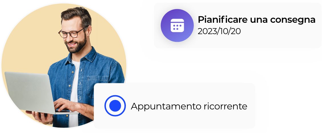 Per ridurre al minimo il rischio di mancata consegna, il nostro sistema integra un sistema di invio di messaggi con un link che consente al cliente di confermare la fascia oraria o, in caso di indisponibilità, di riprogrammare il passaggio del corriere a una data successiva.