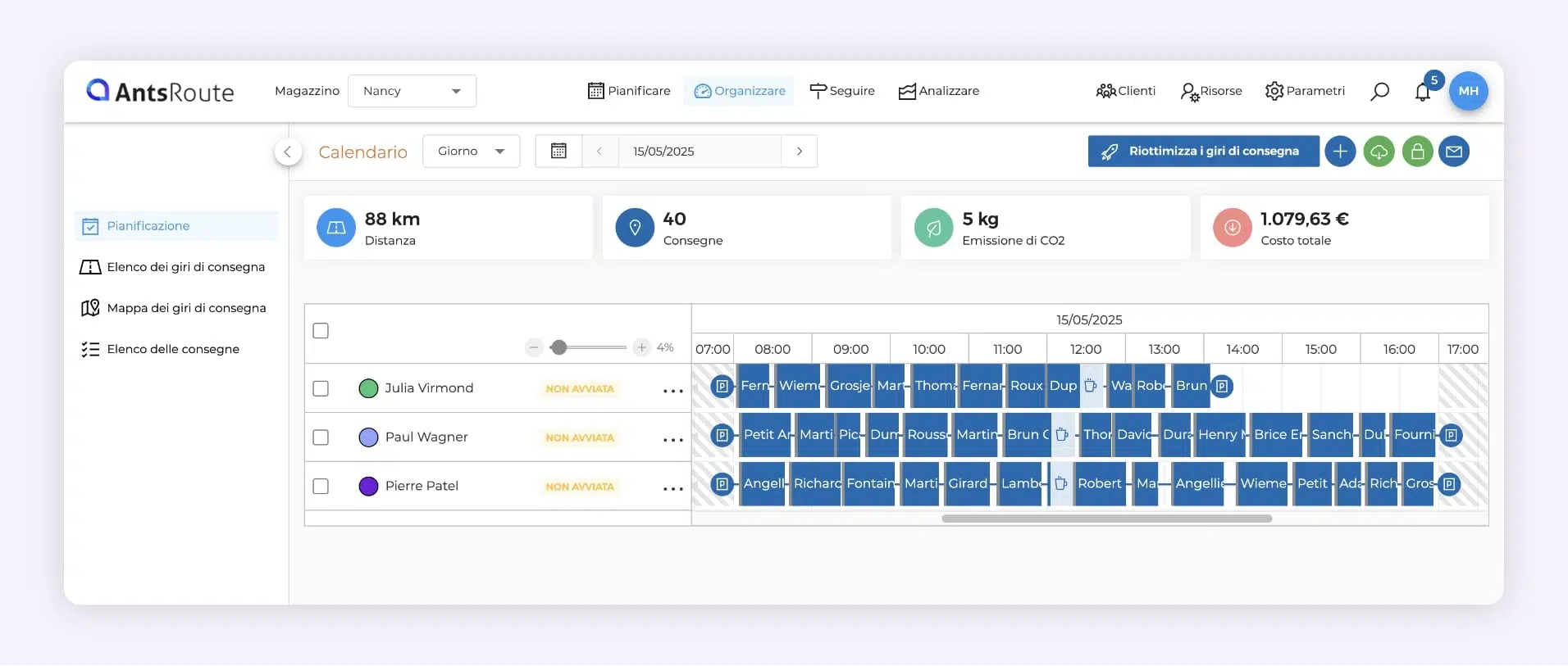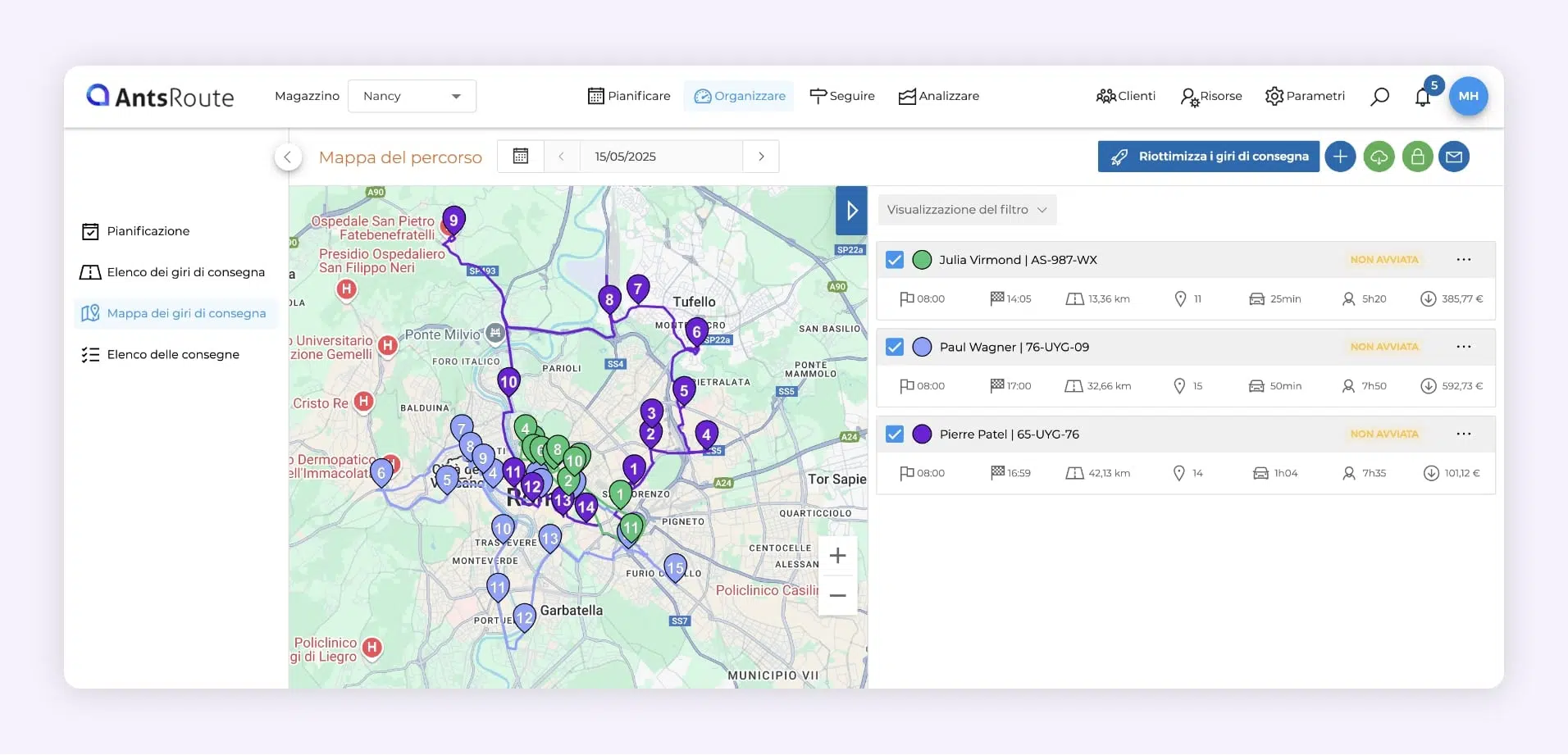 - Generare i percorsi in pochi clic, secondo vincoli e priorità.