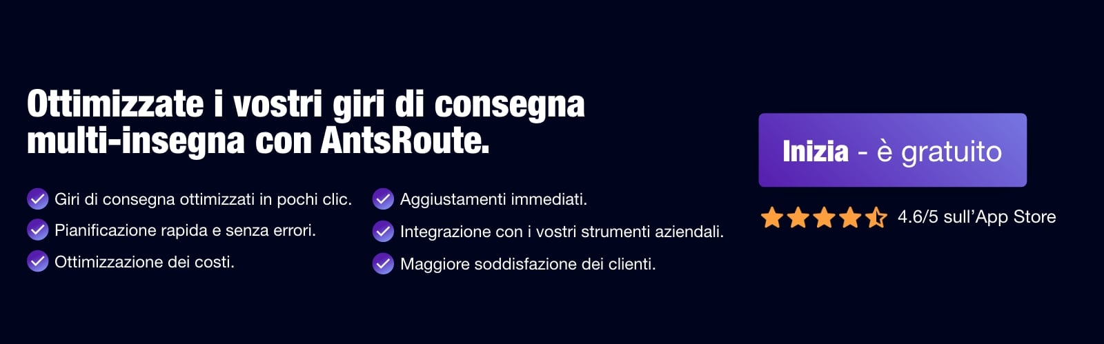 Per le operazioni più complesse, AntsRoute offre la funzione Pickup & Delivery, che gestisce le fasi di carico in diversi magazzini o per insegne differenti, rispettando al contempo la capacità di ogni veicolo. Il risultato: tragitti ottimizzati, giri di consegna bilanciati e nessun sovraccarico. Niente male, vero?