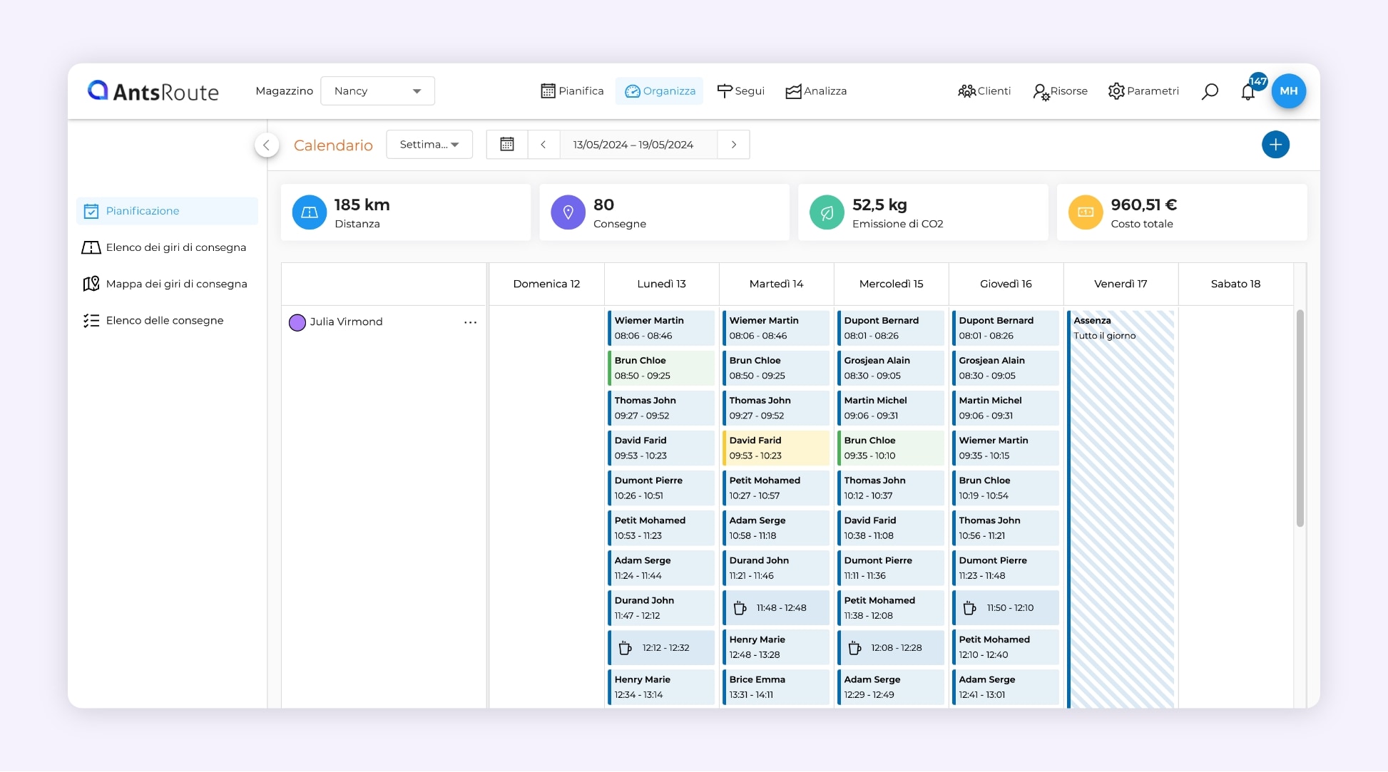 Se invece subappalti determinati percorsi, questo strumento ti fornirà argomenti solidi e quantificati per confrontare le prestazioni dei diversi vettori e sfruttare meglio la concorrenza.