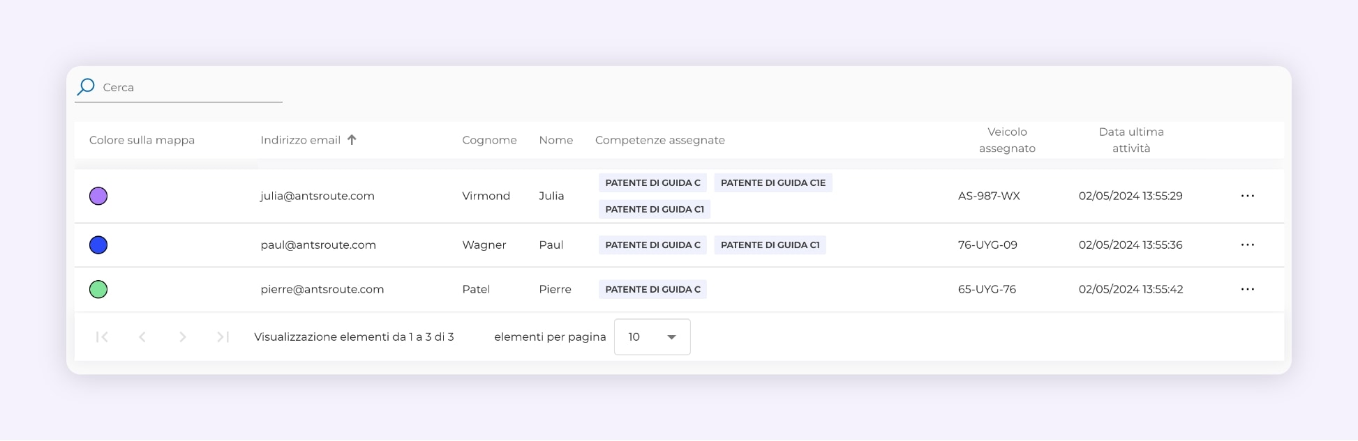 Con il nostro software AntsRoute, puoi per esempio visualizzare in pochi clic dati strategici quali: