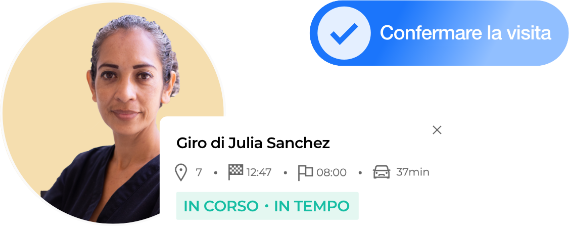 Utilizzate un’unica soluzione per gestire i vostri giri, dalla programmazione degli appuntamenti all’invio dei rapporti di servizio ai vostri pazienti.