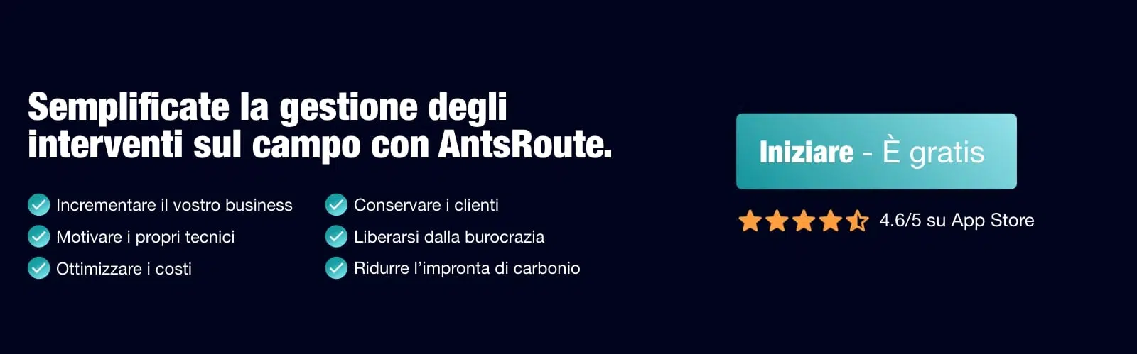 L’obiettivo non è solo velocizzare gli interventi, ma ottimizzarne la gestione. Vuoi migliorare la gestione dei tuoi interventi? Scopri come AntsRoute può trasformare la tua organizzazione sul campo e aumentare i tuoi profitti. Provalo gratuitamente per 7 giorni!