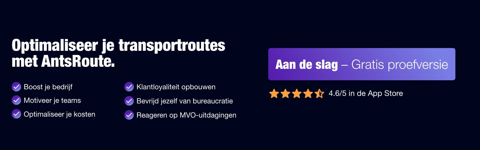 Het aanschaffen en gebruiken van TMS-transportbeheersoftware is een strategische zet voor elk transportbedrijf dat zijn leveringen wil optimaliseren, zijn logistieke kosten wil verlagen en zijn klanten een kwaliteitsvolle service wil bieden. Door de juiste TMS- of routeoptimalisatiesoftware te kiezen en de beste implementatiepraktijken te volgen, kun je de logistiek omzetten in een concurrentievoordeel. Bij AntsRoute staan we tot je beschikking om je hierbij te helpen.