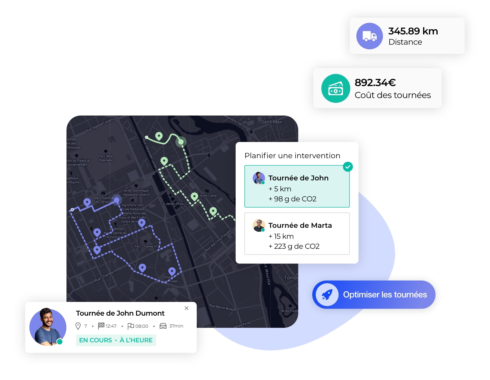 - Suivez l’exécution des tournées en direct grâce à la géolocalisation.