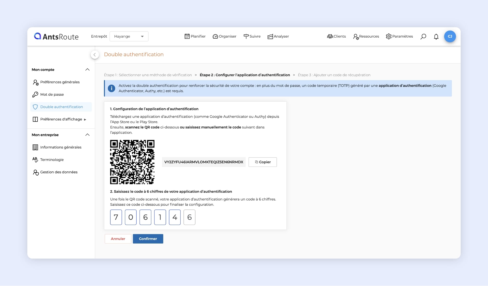 Sécurisez votre compte AntsRoute avec la double authentification