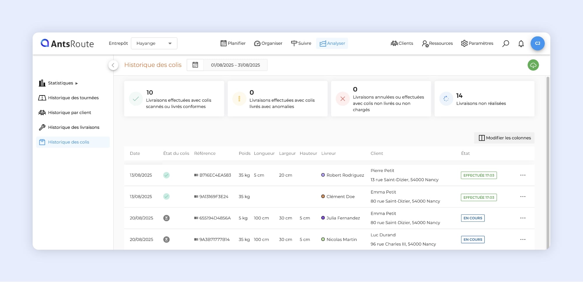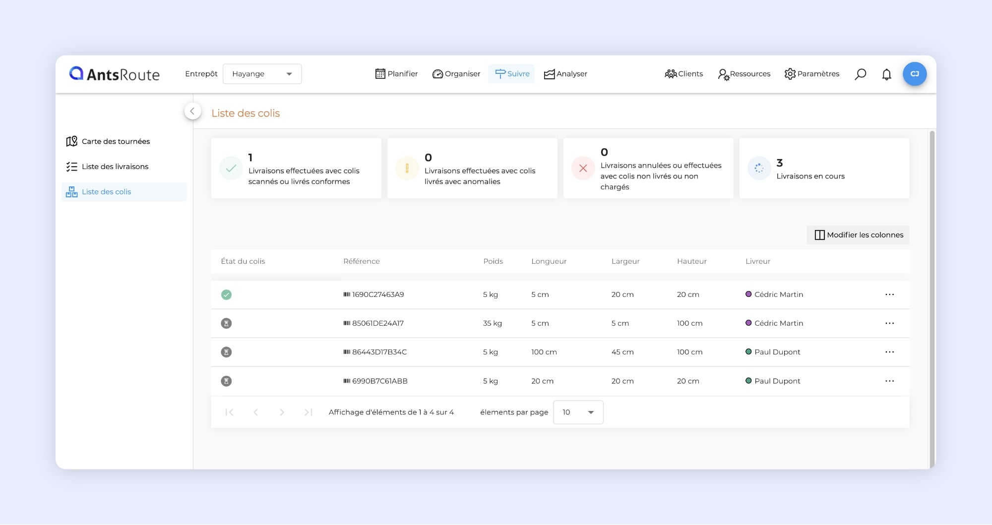 • Suivez en temps réel la livraison de vos colis dans AntsRoute