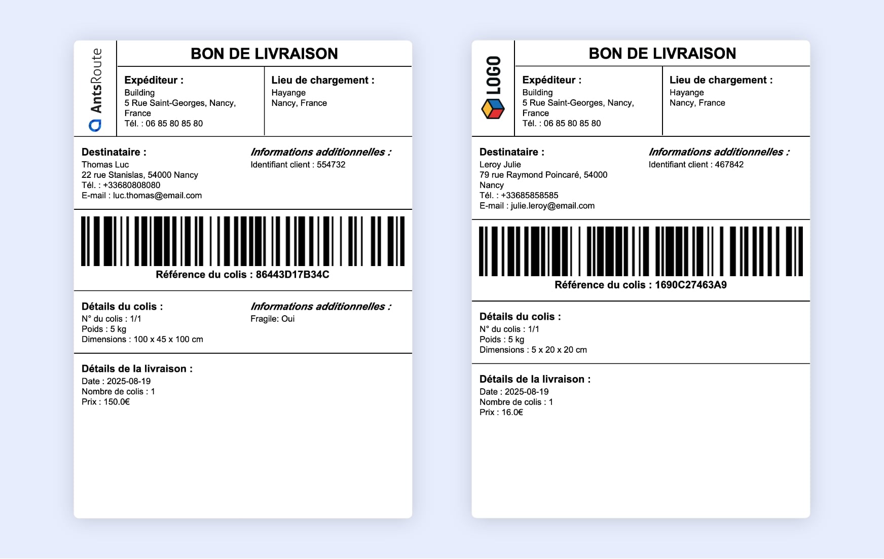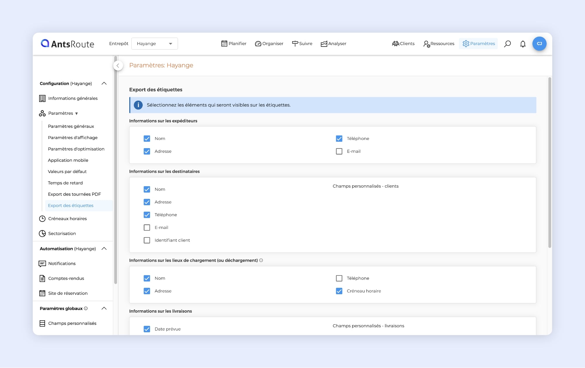 • Téléchargez et personnalisez vos étiquettes de colis directement dans AntsRoute