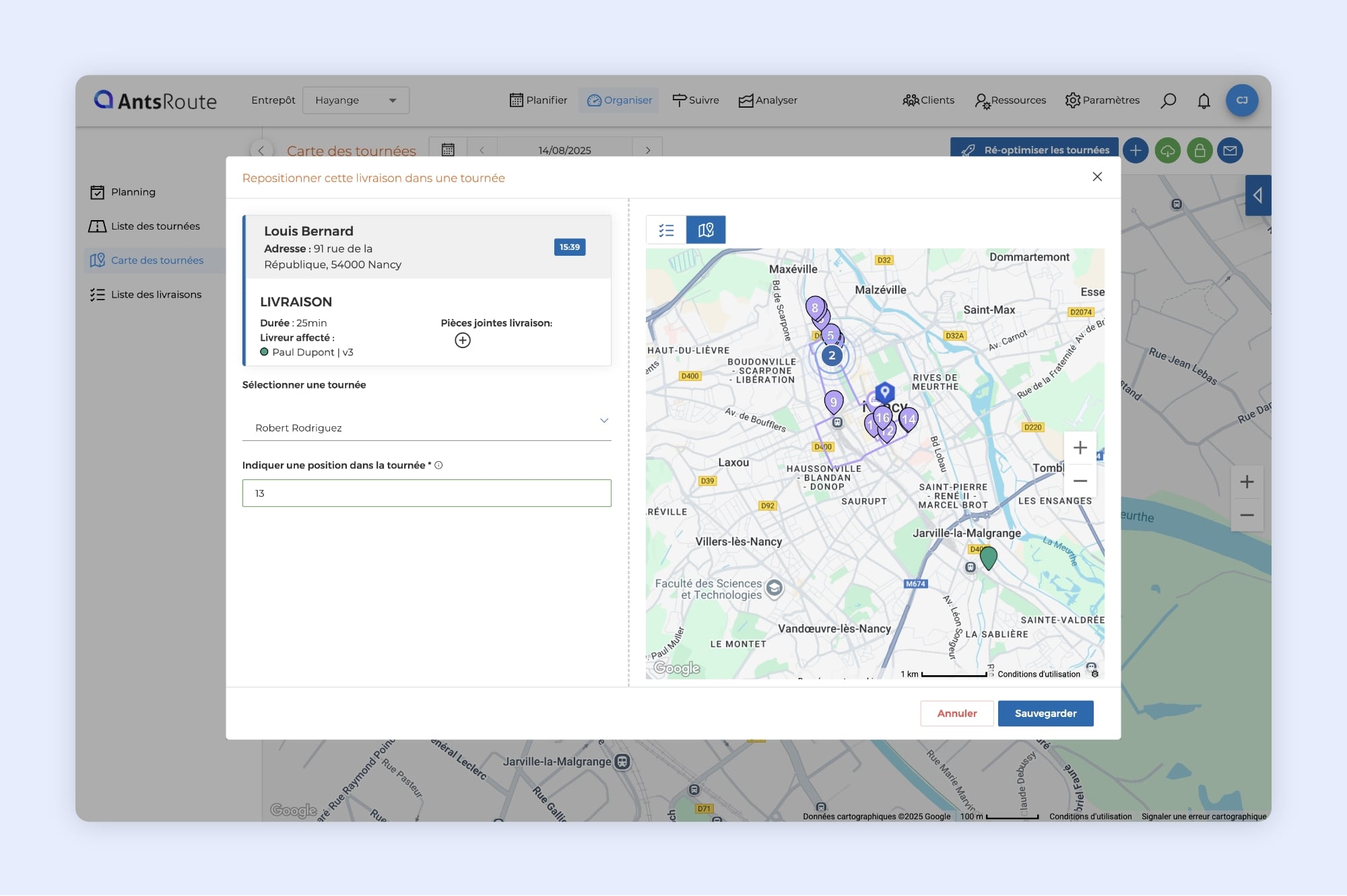 • La réorganisation est possible uniquement avant le démarrage d’une tournée.