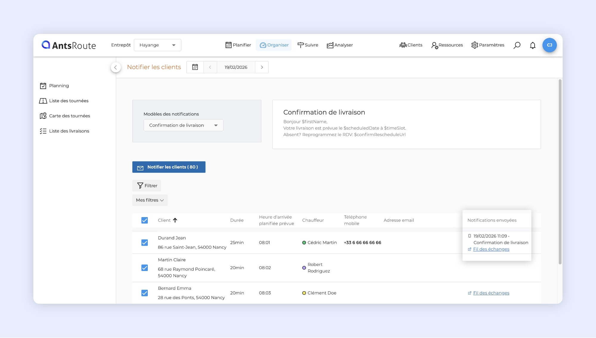 - détecter rapidement les changements pouvant impacter vos tournées,