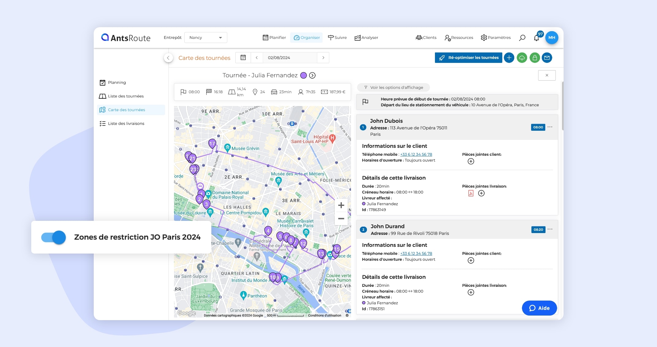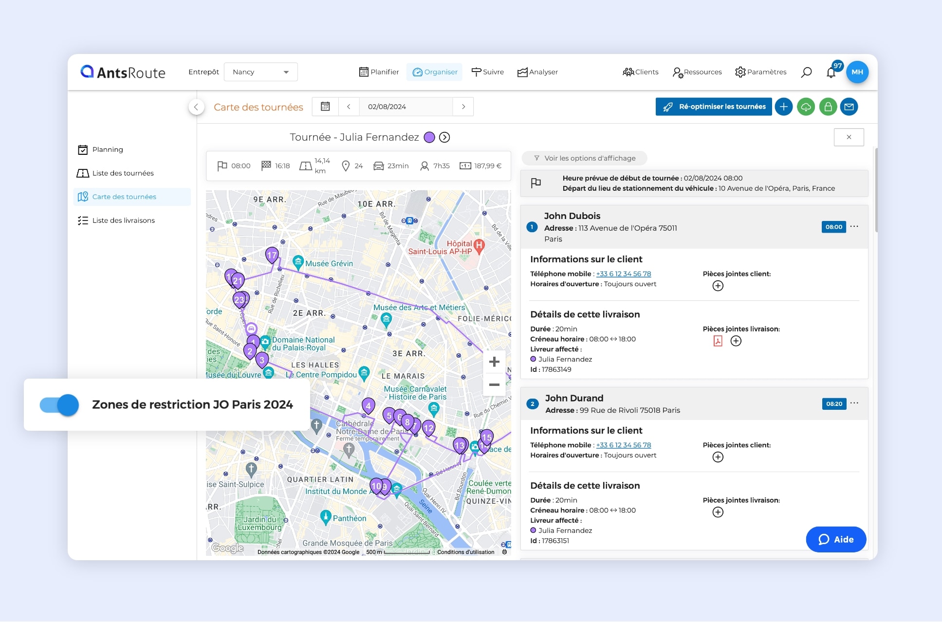 L’exclusion des zones de restriction des JO Paris 2024 sur AntsRoute.