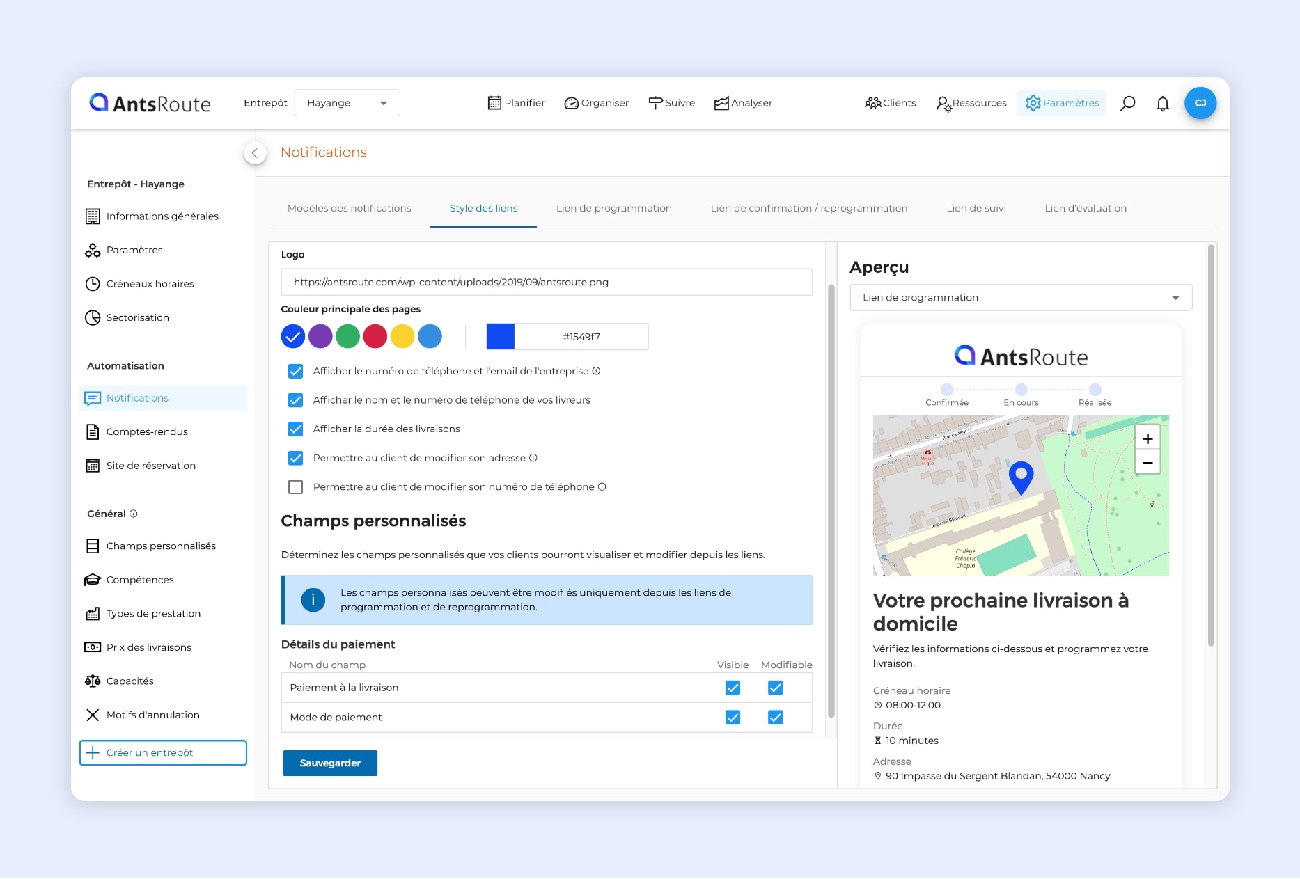 Pour rappel, AntsRoute offre à ses utilisateurs la possibilité d’informer leurs clients en envoyant des SMS ou des e-mails. Dans ces notifications, qu’elles soient manuelles ou automatiques, des liens peuvent être intégrés :