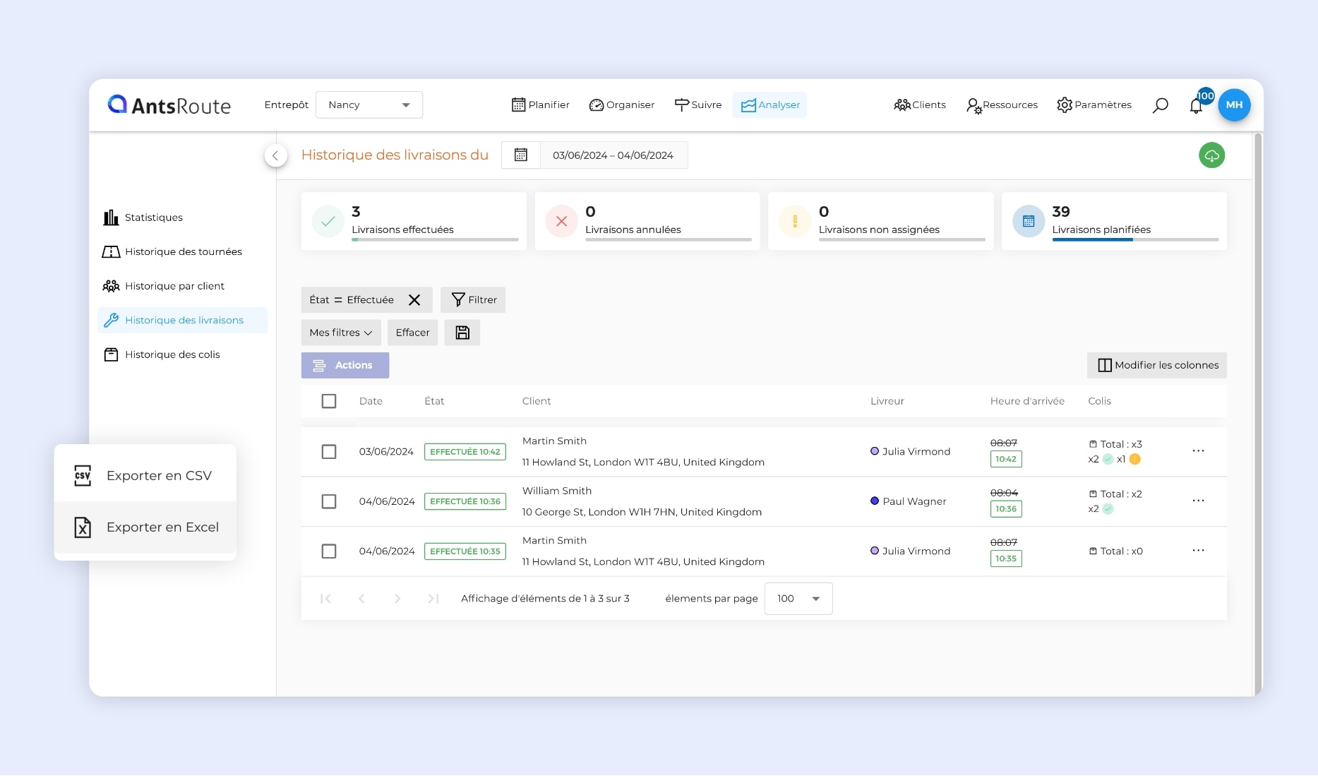 L’export des livraisons avec la référence des colis sur AntsRoute.