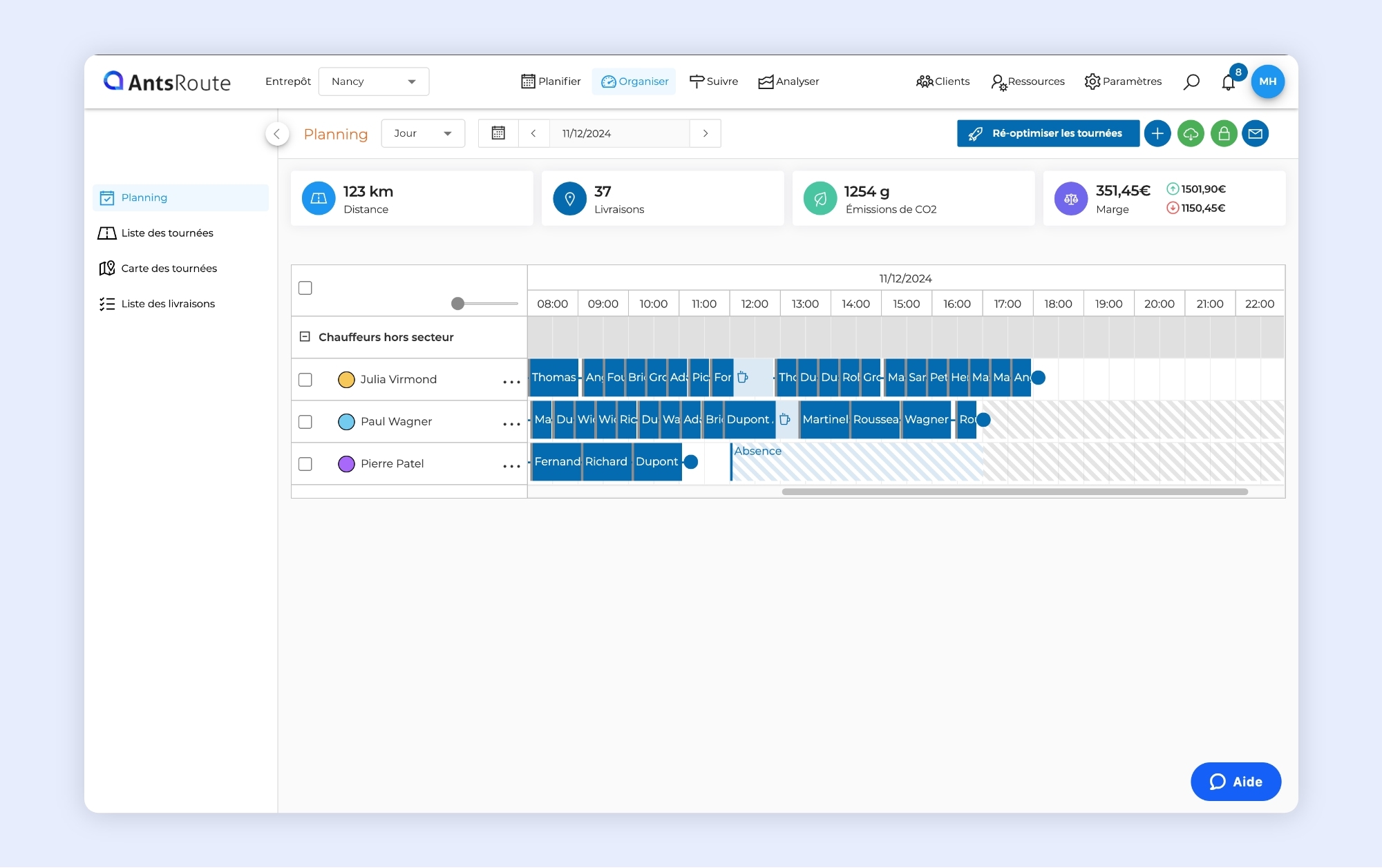 L’affichage des marges des tournées sur AntsRoute.