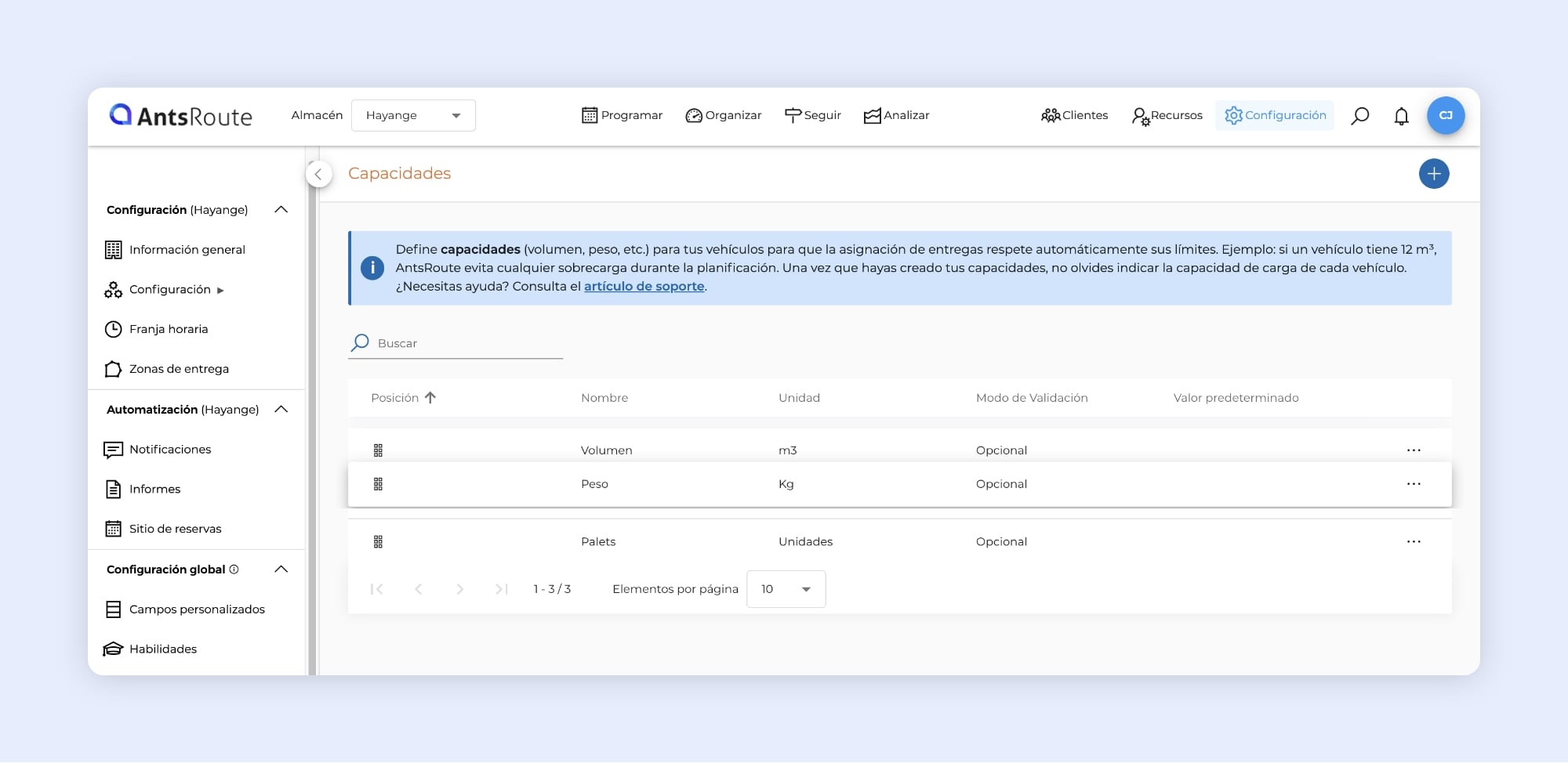 La gestion des capacités évolue ! Si vous utilisez notre fonction permettant de gérer des capacités, c’est-à-dire des contraintes numériques entre vos véhicules, les tournées et les livraisons à réaliser, vous pouvez dorénavant :