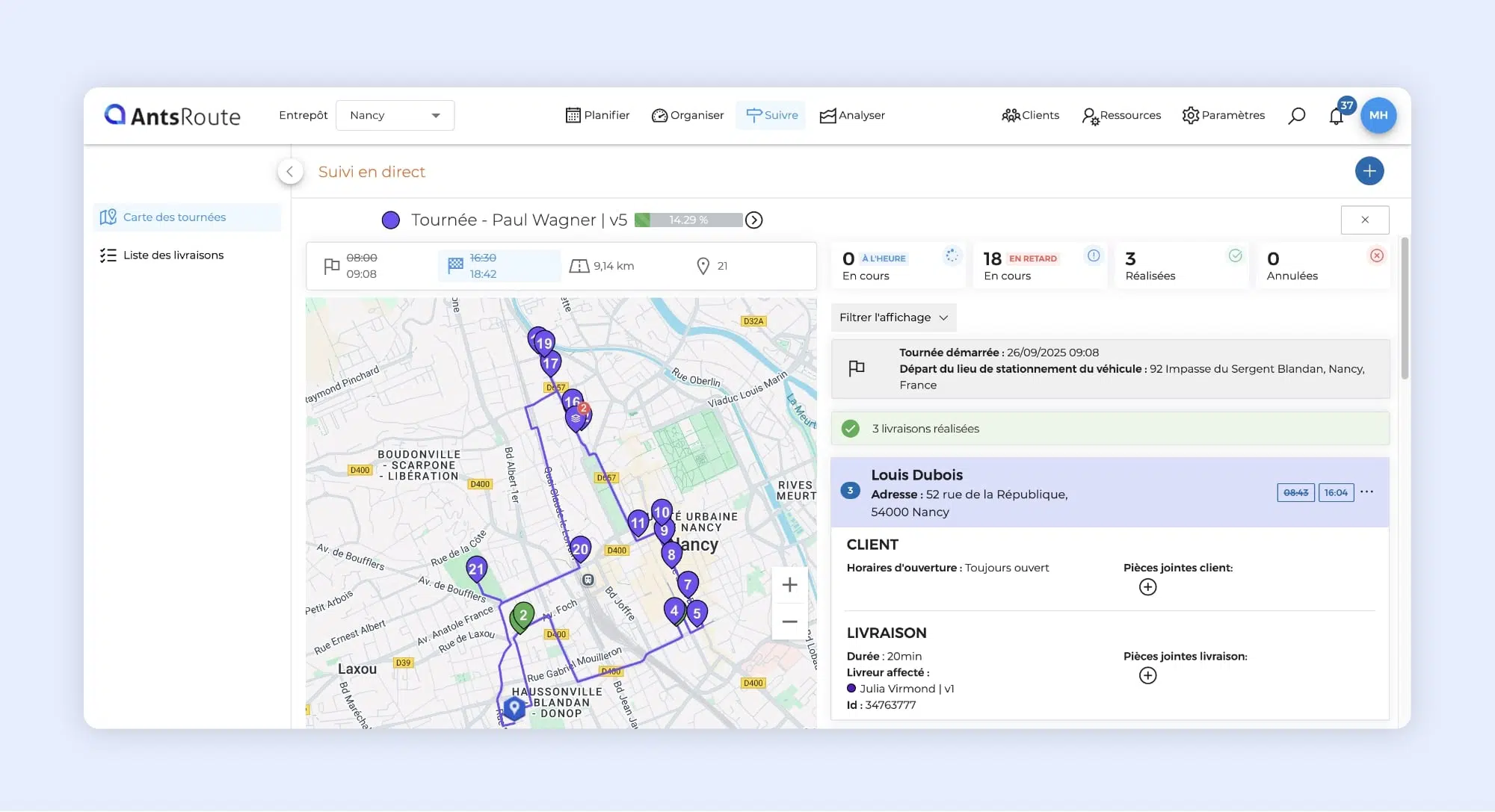 Notre équipe poursuit le développement d’AntsRoute afin de vous offrir un logiciel toujours plus simple, efficace et adapté à vos besoins quotidiens. Ce mois-ci, nous vous proposons plusieurs nouveautés qui devraient améliorer encore davantage votre expérience, tant côté planification que suivi des tournées.