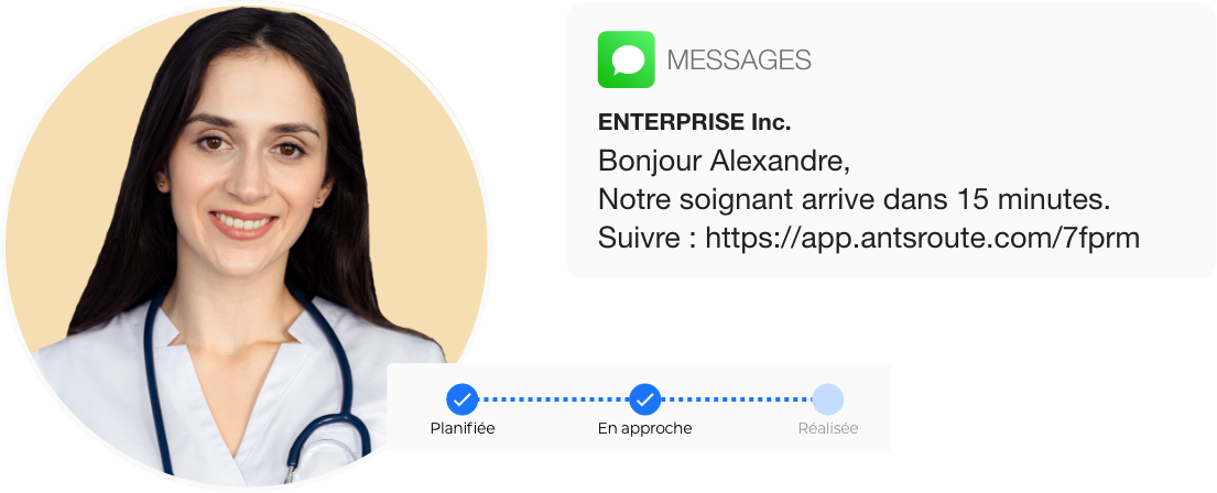 Un système de notification avec un lien de geotracking permettant au patient de suivre en direct l’arrivée du soignant à son domicile.