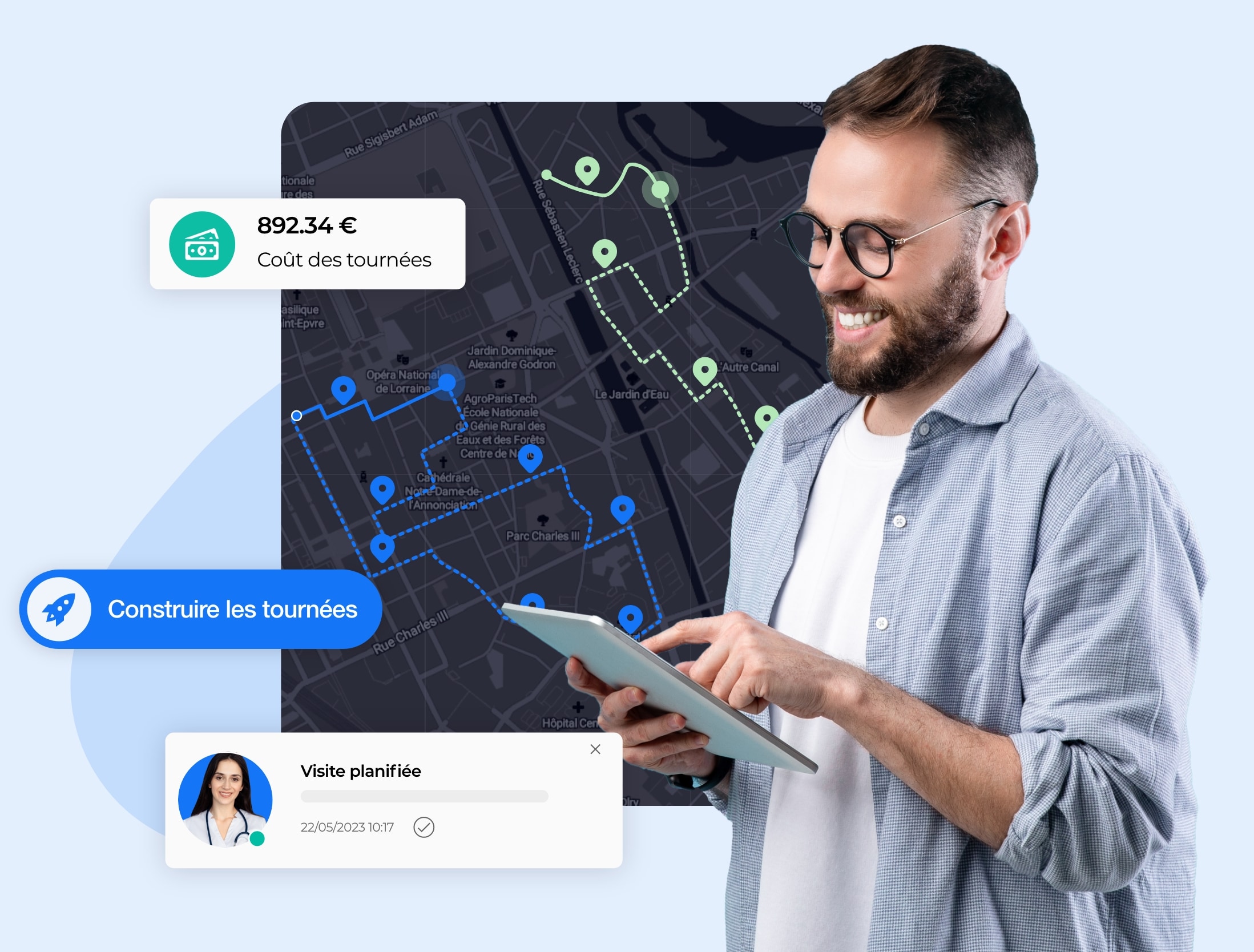 Utilisez une seule solution pour gérer vos tournées, de la planification des rendez-vous à l’envoi des bons de service à vos patients.